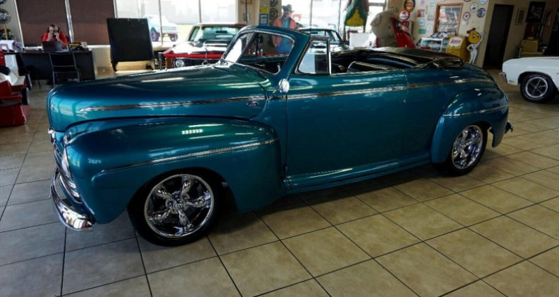 Cet 1946 Ford Super Deluxe Convertible a subi une rénovation complète et a été équipé de touches modernes pour améliorer la performance, la confort et la fiabilité. Sa cuve est dotée d'un moteur 5.0L Fuel-Injected V8 associé à une transmission automatique, avec une suspension Mustang II à l'avant et une remorque Ford 9 à l'arrière. Sa conduite est confortable avec les freins à disque à l'avant, le volant à réglage, les freins à vide et les commandes de direction à assistance électrique. Il est également équipé d'un climatiseur, d'un système audio amélioré et de instruments de bord modernisés. Ce véhicule a un kilométrage de 20 163 miles et dispose d'une carrosserie et d'une sous-carrosserie détaillées. Il est disponible en vert avec intérieur noir.. Ce descriptif est basé sur les éléments communiqués par le propriétaire avec un traitement assisté. Merci pour votre indulgence en cas de formulation perfectible. Provenance : Iowa. Disponibilité : 7 semaines, clés en main. 42 500 € tout compris (importation, taxes, procédure d'immatriculation). Annonce publiée le 05/11/2025
