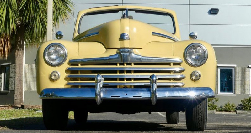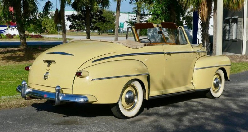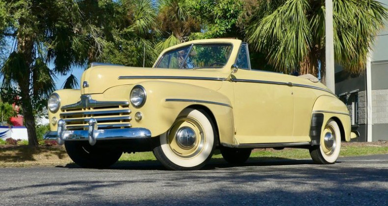 Informations fournies par le vendeur : 1948 Ford Super Deluxe Convertible, Yellow lacquer paint, good chrome and brightwork, steel wheels with whitewall tires, power convertible top (inoperable), original style 221 CID Flathead V8 engine, 3 speed column shift manual transmission, brown leather interior, art-deco style wood grain dash and instrument panel.. Provenance : , USA. Disponibilité : environ 7 semaines, clés en main. 31 000 € tout compris (import, taxes, procédure d'immatriculation). Nous représentons les acheteurs sur le marché nord-américain et sécurisons chaque étape du processus, de la sélection jusqu’à la mise en circulation en Europe. Basés en France, nous faisons bénéficier nos clients d’un réseau solide de vendeurs professionnels, de collectionneurs privés, d’experts indépendants et de partenaires logistiques présents sur l’ensemble des États-Unis et du Canada. Annonce publiée le 21/11/2025