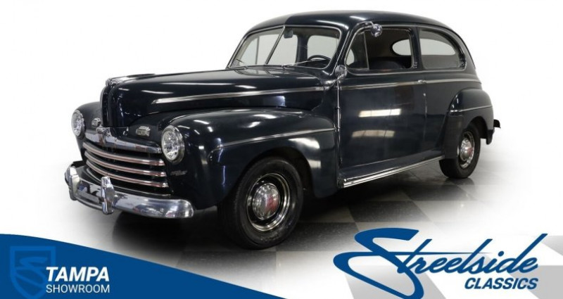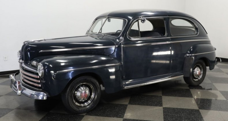 1946 Ford Super Deluxe, Dark Blue exterior, Blue interior, 239 Flathead V8, 3-Speed Manual, RWD, 15 wheels in 215/65R15 tires, Two-Piece Windshield, Two-Tone Blue Vinyl and Cloth Upholstery, Chrome Bumpers, Grille, and Trim, Upgraded Clear Headlights, Single barrel Carburetor, Drum Brakes, Dual Exhaust System, Dark Blue Carpet and Floor Mats, Front and Rear Seatbelts added, Spare Tire and Jack. Provenance : Florida. Disponibilité : environ 7 semaines, clés en main. 22 500 € tout compris (importation, taxes, procédure d'immatriculation). Annonce publiée le 29/11/2025