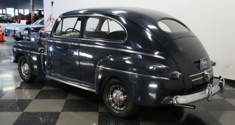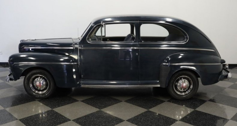 - Marque : Ford - Année : 1946 - Modèle : Super Deluxe - Carrosserie : Sedan - Moteur : 239 Flathead V8 - Boîte de vitesses : 3 vitesses manuelle - Transmission : RWD - Couleur extérieure : Bleu foncé - Couleur intérieure : Bleu et beige - Pneus : 215/65R15 - Kilométrage : 17 698 - VIN original : 99A9707254801-TPA - Accessoires : Bumpers chromés, phares clairs améliorés, capot propre, freins à tambour, système d'échappement à deux sorties, sièges rouges et bleus, tableau de bord original, tapis bleus et carpets, ceintures de sécurité avant et arrière ajoutées, coffre propre avec mat de coffre, roue de secours et jack.. Provenance : Florida. Disponibilité : environ 7 semaines, clés en main. 22 500 € tout compris (importation, taxes, procédure d'immatriculation). Annonce publiée le 08/12/2025