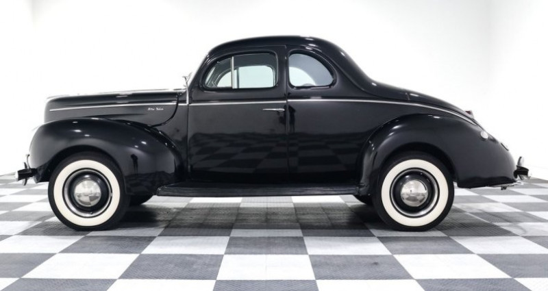 - Marque : Ford - Modèle : Deluxe - Année : 1940 - Couleur extérieure : Noir - Couleur intérieure : Noir - Type de carrosserie : Coupe - Transmission : 3 vitesses manuelle à colonne de vitesse - Moteur : 221ci Flat Head V8 - Mileage : 237 miles - Suspension : Pete Jakes shocks - Direction : Manuelle - Freinage : 4 roues à tambour - Mise à jour récente : près de 10 000 $ en maintenance et améliorations - Conversion de phares : H4 halogène - Lumières arrière LED - Signaux de direction intégrés dans les phares de stationnement - Freinage électrique - Système de wiper électrique - Système de freinage neuf - Jantes Deluxe avec pneus blancs larges - Aucune information sur l'état de fonctionnement des équipements tels que la cloche d'avertissement, le compteur de carburant, le compteur de pression d'huile, le compteur de vitesse, le compteur de température, les phares, les feux arrière, les feux de position, etc.. Provenance : Texas. Disponibilité : environ 7 semaines, clés en main. 40 000 € tout compris (importation, taxes, procédure d'immatriculation). Annonce publiée le 17/12/2025