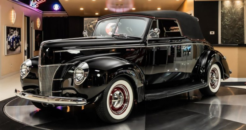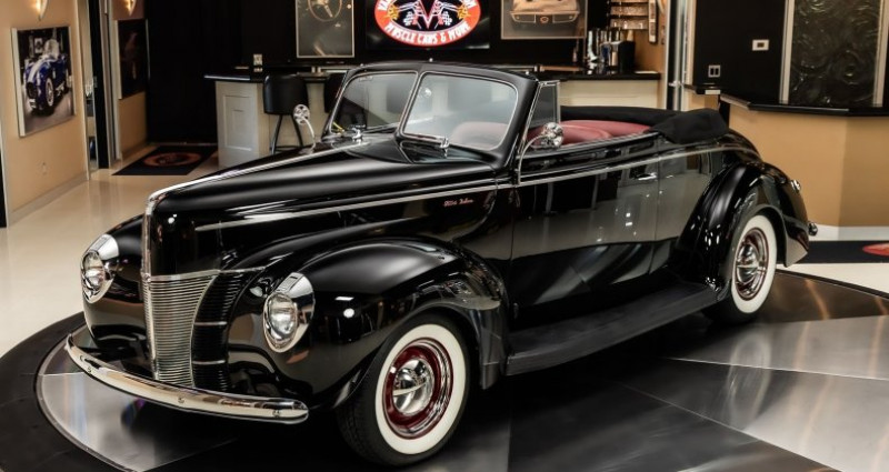 - Couleur extérieure : Noir - Couleur intérieure : Rouge - Moteur : Small Block Ford 302ci V8 - Boîte de vitesses : 4 vitesses automatique AOD - Arbre de transmission : Ford 9 Posi avec 3.73:1 rapport de transmission - Freins : Assisté de puissance - direction : Assisté de puissance - Système audio : JVC Aftermarket Stereo - Climatisation : Oui - Toit : Convertible électrique - Essieu arrière : 9 Ford Posi avec 3.73:1 rapport de transmission - Système d'échappement : Double échappement personnalisé avec mufflers Flowmaster - Essieu avant : Pneus blancs larges, 195/75/15 pour l'avant et 225/75/15 pour l'arrière - Carrosserie : Peinture noire, carrosserie acier, split windshield, carrosserie arrière acier, grille de calandre de style usine, toit de voiture électrique convertible, bandes de roulement en caoutchouc recouvertes de caoutchouc - Intérieur : Intérieur rouge personnalisé, sièges de banquette personnalisés, volant de direction de style usine, système audio Aftermarket JVC, fenêtres électriques, coffre fini avec panneaux de fermeture, climatisation - Garage : Vanguard Motor Sales, 248-974-9513, www.vanguardmotorsales.com. Provenance : Michigan. Disponibilité : environ 7 semaines, clés en main. 117 500 € tout compris (importation, taxes, procédure d'immatriculation). Annonce publiée le 22/12/2025