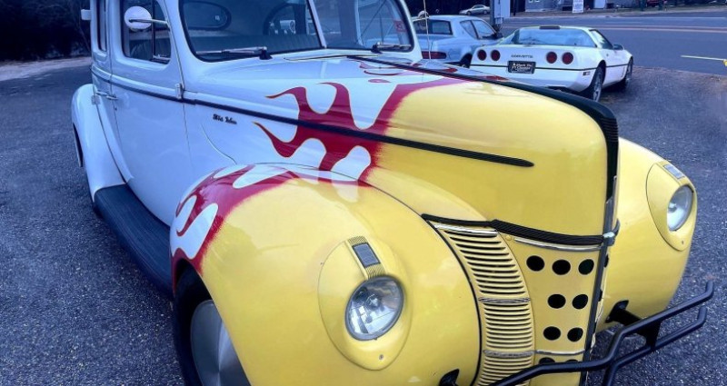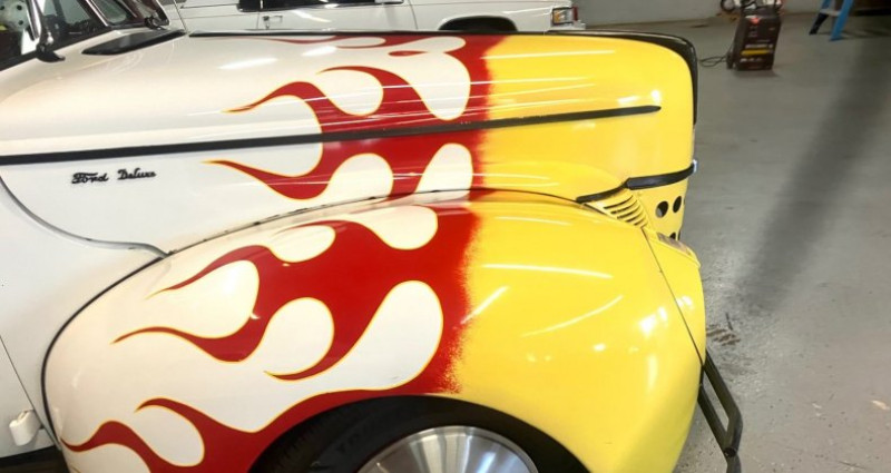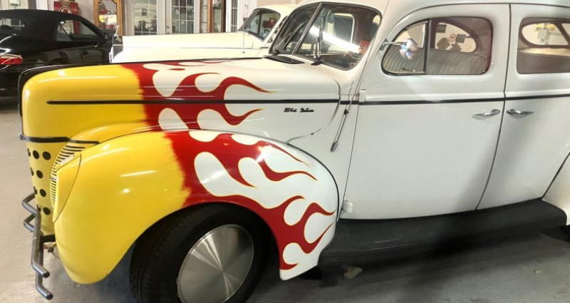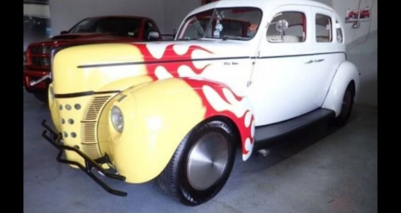 - Marque : Ford - Modèle : Deluxe - Année : 1940 - Type de carrosserie : Sedan à 4 portes - Couleur extérieure : Blanche / Flamée - Couleur intérieure : Blanche - Moteur : 8 cylindres (1957 Chevy) - Boîte de vitesses : Manuelle à 4 vitesses - Équipements : Sièges avant et arrière bancs, roues de 15 pouces de course, échappement, échappement coupe-feu, tableau de bord complet, signalettes de direction, volant rabattable, cadres peints personnalisés, barres de protection et grille personnalisés, radio dans le coffre - Kilométrage : 0 - Numéro de châssis original : XXXXXXXX. Provenance : New Jersey. Disponibilité : environ 7 semaines, clés en main. 31 500 € tout compris (importation, taxes, procédure d'immatriculation). Annonce publiée le 31/12/2025