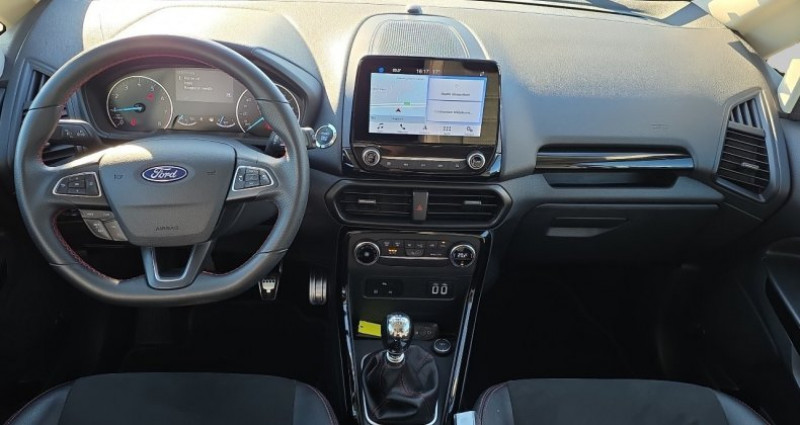 Cylindrée : 998 cm3 Nb. Vitesse : 6 - Aide au stationnement AR - Air conditionné automatique - Allumage automatique des phares et des essuie-glaces - ESP + HLA (aide au démarrage en côte) - Feux de jour à LED - Jantes alliage 17 exclusives ST-Line - Levier de frein à main en cuir ST-Line - Volant gainé de cuir perforé ST-Line - 3ème appui-tête AR - Airbag genoux conducteur - Airbags frontaux, latéraux (thorax) et rideaux - Alarme périmétrique - Banquette AR rabattable 60/40 - Barres de toit Noir - Bavettes de protection - Boîte à gants éclairée - Calandre noire exclusive ST-Line - Chauffage auxiliaire - Console centrale avec accoudoir coullissant et porte-gobelets - Direction assistée électrique - Eclairage d'ambiance intérieur - Entourage des feux noir - Environnement noir - Feux antibrouillard AV - Kit Carrosserie ST-Line - Kit de réparation des pneumatiques - Levier de vitesse spécifique ST-Line - Limiteur et régulateur de vitesse - Lèche-vitres noirs - Ordinateur de bord couleur 4.2 - Pare-brise acoustique - Pare-chocs couleur carrosserie - Plancher de coffre ajustable - Plaques de seuil de portes AV avec logo ST-Line - Poignées de portes extérieures couleur carrosserie - Prise 12V AV et AR de la console centrale - Pédalier Sport - Rétroviseur intérieur électrochrome - Rétroviseurs extérieurs couleur carrosserie, chauffants, réglables et rabattables électriquement avec rappel de clignotant intégré - Siège conducteur réglable en hauteur avec réglage lombaire - Suspension Sport - Système audio Ford SYNC 3, écran tactile 8, 2 ports USB, commandes vocales, 7 HP - compatible AppLink, Apple CarPlay et Android auto - Système de surveillance de la pression des pneus - Système KeyFree (Ouverture et démarrage mains libres) - Système MyKey (seconde clé programmable) - Tapis de sol ST-Line AV et AR - Toit et rétroviseurs peints en Noir - Trappe à carburant EasyFuel - Vitres AV/AR électriques à impulsion haut/bas à l'AV côté conducteur et passager