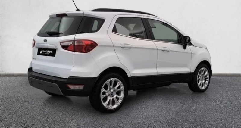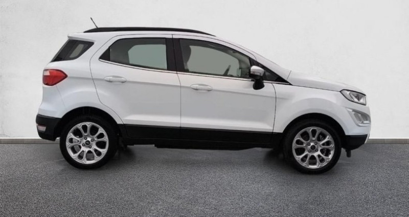 Ford EcoSport 1.0 EcoBoost 125 BVM6 Titanium crossover, suv, blanc, 6 cv, 5 portes, première mise en circulation le 07/02/2022, garantie 6 mois. OPTIONS ET ÉQUIPEMENTS : Audio - Télécommunications : - commandes vocales - ecran tactile Conduite : - Système de démarrage sans clé Ford Power - allumage automatique des feux - régulateur de vitesse Extérieur : - Bavettes de protection - Pare-brise acoustique - réglables et rabattables - Aide au stationnement AR - barres de toit - jantes : alliage - jantes alliage Intérieur : - Air conditionné automatique - Boîte à gants éclairée et réfrigérée - Pommeau de levier de vitesse cuir - Porte-gobelets sur console centrale - chauffants - chauffage stationnaire - direction assistée - ordinateur de bord - prise 12V - siège conducteur réglable en hauteur - vitres électriques - volant cuir Pack : - Console centrale avec accoudoir coulissant et porte gobelet - Eclairage d'ambiance intérieur - Kit de réparation des pneumatiques - Pare-chocs couleur carrosserie - Plancher de coffre ajustable - Plaques de seuil de portes AV Ecosport - Poignées de frien à main cuir - Poignées de portes extérieures couleur carrosserie - Rétroviseurs extérieurs couleur carrosserie électriques - Système MyKey (seconde clé programmable) - Sieges arrières rabattable - appuis-tête arrière - tapis de sol Sellerie : - Sellerie Cuir/Tissu Noir Sécurité : - Airbags frontaux - Alarme périmétrique - Feux de brouillard AV - latéraux (thorax) et rideaux - Aide au demarrage en pente - ESP - airbag genoux conducteur - airbags frontaux - contrôle pression des pneus Autres équipements et informations : - Calandre avec barres façon chrome - Environnement noir - Lèche-vitres chromés - Système multimédia Ford SYNC 3 avec navigation - Trappe à carburant EasyFuel - Vitres AV/AR électriques à impulsion haut/bas à l'AV côté conducteur et passager - Classe Crit'air : 1 - USB - feux de circulation diurne - émission CO2 : 119 g/km Référence annonce : RK1ME23998-LBC