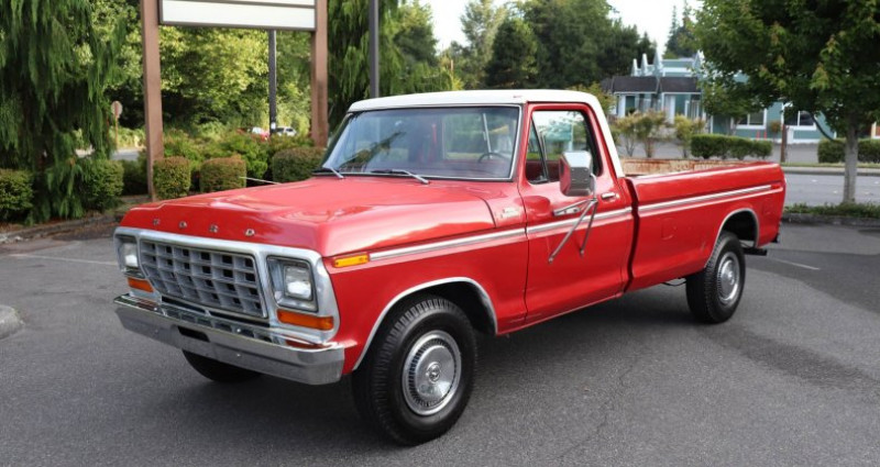 Le véhicule en question est un Ford F350 Regular Cab de l'année 1979, doté d'une cabine simple et d'un lit de charge de 9 pieds. Sa benne de charge contient une roue placée de côté. Le moteur est un 460 cubic inch avec une transmission automatique C6. Il est muni de freinage P.S., P.D.B., un volant réglable, une boîte à gants avec cruise control, un équipement audio, un hitch de remorquage Reese, des parties neuves pour les calandres, la batterie, les hoses, les ceintures, les joints des portes, des coussins de sièges restaurés et un coussin d'instruments remplacé. La peau originale est présente à l'exception de la queue et du capot. Le véhicule a été récemment modifié pour fonctionner, avec un essieu arrière Dana 70. Il fonctionne très bien et possède deux réservoirs de carburant complets, des visées pour les aubes et des bandes de nettoyage des vitres. Le kilométrage est de 452 miles. Le numéro du véhicule est F35JRDE0646 et il est référencé sous le numéro de stock # 2582099. Pour plus d'informations, veuillez contacter Adolfo Sandoval au 206-683-5855 ou Louie Lamb au 425-343-7079.. Ce descriptif est basé sur les éléments communiqués par le propriétaire avec un traitement assisté. Merci pour votre indulgence en cas de formulation perfectible. Provenance : Washington. Disponibilité : 7 semaines, clés en main. 19 000 € tout compris (importation, taxes, procédure d'immatriculation). Annonce publiée le 07/11/2025