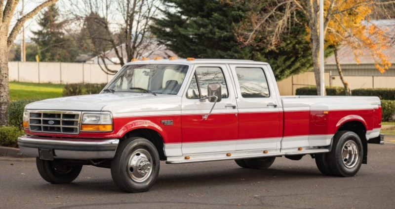 - Marque : Ford - Modèle : F-350 XLT Crew Cab 4-Porte - Type de transmission : Propulsion arrière - Capacité du coffre : 8 pieds - Moteur : 7.5 Litre (460) CI moteur V8 essence, EFI - Boîte de vitesses : Transmission HD électronique 4 vitesses automatique surcharge - Kilométrage : 56 440 miles (original) - Couleur extérieure : Deux tons clairs (Oxford White et Rouge vif) - Intérieur : Gris opal cuir - Système audio : Stereo AM/FM avec lecteur de cassette et horloge, 4 haut-parleurs, point d'alimentation auxiliaire, allume-cigarette/cigarette - Autres équipements : Système de climatisation, rétroviseurs extérieurs, sièges arrière rabattables avec support lumbar pour conducteur et passager, etc.. Provenance : Oregon. Disponibilité : environ 7 semaines, clés en main. 26 000 € tout compris (importation, taxes, procédure d'immatriculation). Annonce publiée le 23/12/2025