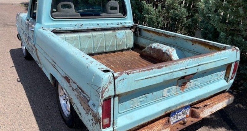 Ce véhicule de collection, un Ford F100 de 1967 aux panneaux latéraux caractéristiques, dispose d'un extérieur original présentant une magnifique patina et fonctionne comme une voiture moderne. Le sous-chassis a été remplacé par un Crown Victoria K-Member en 2006, et le pont arrière provient d'une Ford Explorer avec un rapport de réduction de 3.73, ainsi qu'un freinage renforcé 4 roues à régulateur de pression et une attitude imposante. Le moteur et la boîte de vitesses ont été remplacés récemment par un moteur Windsor de 5, 0 litres de 1995 doté d'une injection à carburant Holley Sniper, d'un plateau d'admission double plaque en aluminium neuf, d'une ignition HEI, d'échappements, d'un radiateur en aluminium, et une transmission C6. Les roues et les pneus sont des American Racing Chrome Touqthrust M, avec des Nexen Rodian neufs en 225/65R17 pour l'avant et 265/65R17 pour l'arrière. L'intérieur est équipé de sièges de banc, de tapis en bon état, d'une manette de vitesse Hurst, d'un tableau de bord personnalisé, de rubans de pare-brise et de verre arrière neufs, de couvercles de ventilation de nouvelles cartonnées, de rubans de fenêtre et de doublure de porte neufs, de montre de vitesse fonctionnelle, de jauge à carburant fonctionnelle, ainsi qu'une jauge pour le mélange air-carburant et d'autres jauges sur le tableau tactile Holley Sniper. La voiture est dotée d'un verrouillage de portes et de l'éclairage de cabine. De plus, quatre canettes d'aérosol du coloris original du véhicule sont incluses. Le transport par camion sera facturé 500 dollars pour tout le continental US ou bien, le ramassage est gratuit à emporter. Cette voiture de collection est régulièrement utilisée pour des promenades et des expositions, et est très fiabile. Bien qu'il s'agisse d'un camion, il manœuvre et roule comme une voiture, ce qui en fait un véhicule divertissant pour tous. Tout le monde aime ce véhicule.. Ce descriptif est basé sur les éléments communiqués par le propriétaire avec un traitement assisté. Merci pour votre indulgence en cas de formulation perfectible. Provenance : Colorado. Disponibilité : 7 semaines, clés en main. 24 500 € tout compris (importation, taxes, procédure d'immatriculation). Annonce publiée le 28/09/2025