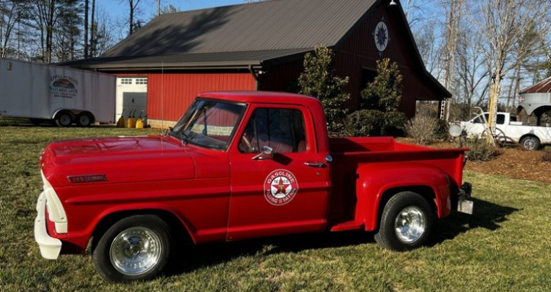 Ce véhicule est un F100 Flare-side de 1967, équipé d'un moteur de 352 et d'une boîte de vitesses à trois rapports. Le kilométrage original est inconnu, mais le moteur a été récemment serré et peint. Les cylindres conservent encore les marques de croix-hachure datant de sa construction. Le véhicule est équipé d'une nouvelle tuyauterie d'échappement et d'un moteur caméléon doux, d'un nouvel intake, d'un carburateur, d'un radiateur, d'une échappement, de freins, de joints de suspension de l'avant et d'un plancher de la benne. Les bouses DJM d'abaissement restent équipées de tambours à tous les coins. Le climatisation rétro de la marque Vintage Air fonctionne correctement. Le véhicule marche et conduit tel qu'il devrait et est une restauration ancienne. La cabine est solide sans rouille et est en matériau d'origine. Les portes ont quelques bulles petites dans les coins, mais sinon sont solides. La benne est en très bon état. Ce véhicule est de qualité de conduite solide. La carte d'immatriculation nettoyée de la NC est déjà en possession.. Provenance : NC, USA. Disponibilité : 7 semaines, clés en main. 23 000 € tout compris (import, taxes, procédure d'immatriculation). Annonce publiée le 12/10/2025