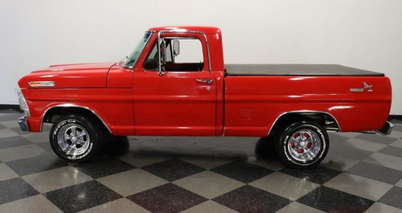 Ce pick-up de collection, de marque inconnue, est équipé d'un V8 Coyote de 5, 0L et d'une boîte de vitesses manuelle à 6 rapports. Il présente une carrosserie métallique rouge avec des sièges intérieurs noirs et des roues chromées Cragar de 15 pouces. Les caractéristiques techniques incluent des freins à disques avant, des freins arrière, des refroidisseurs électriques double, une suspension à réglage ajustable des amortisseurs avant, des sorties d'échappement MagnaFlow et des pneus BF Goodrich Radial T/A de 245/60R15 et 295/50R15 pour la version avant et arrière. La cabine intérieure est équipée d'un tableau de bord et d'instruments d'origine Mustang, d'un système stéréo AM/FM/AUX et de climatisation. L'état général du véhicule est globalement satisfaisant, avec des caractéristiques originales et des éléments supplémentaires.. Ce descriptif est basé sur les éléments communiqués par le propriétaire avec un traitement assisté. Merci pour votre indulgence en cas de formulation perfectible. Provenance : Florida. Disponibilité : 7 semaines, clés en main. 47 500 € tout compris (importation, taxes, procédure d'immatriculation). Annonce publiée le 15/10/2025