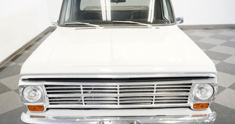 Ce 1968 Ford F-100 restomod est un véhicule à cabine de taille pleine, richement restauré avec une peinture à lustre miroir Ford Raptor Grey, et accents en brillant acier chrome, aluminium forgé et ensembles d'emblèmes shavés. L'habitacle, customisé en noir, présente des sièges à chauffage TMI chauffants avec des inserts en mimosa faux cuir, des panneaux de portes TMI et un tableau de bord personnalisé équipé de supports à boisson et de chargeurs sans fil double, ainsi qu'un tableau de bord repensé avec des instruments Speedhut, une radio RetroSound intégrant AM/FM/AUX/Satellite/Bluetooth, des haut-parleurs Rockford Fosgate cachés sous tableau de bord et sièges, colonne de direction inclinable et une volante MOMO en cuir lisse.Le moteur est un 4.6 Liter, 3-valve, injecté à carburant V8 avec compresseur Ford Racing Whipple, couplé à une boîte automatique 4-vitesse 4R70. L'essieu arrière est un 9-pieds Ford Currie et la transmission fait son chemin vers l'essieu arrière. La suspension a été améliorée avec des composants tels qu'un avant Fatman Mustang II, des amortisseurs double réglables Ridetech, un freinage à 4 roues avec des disques d' freinage drillés, et des ressorts d'essieu avant en acier forgé. Le châssis est entièrement en bois de pin et la plate-forme arrière a été redessinée avec un sol en bois souligné.Ce véhicule a été présenté dans le numéro de novembre 2021 de Classic Truck Performance magazine et l'exemplaire de la revue y est inclus. Restauré à un standard élevé, ce 1968 Ford F100 est spectaculaire à voir et une expérience de conduite délicieuse. Contactez-nous aujourd'hui!. Ce descriptif est basé sur les éléments communiqués par le propriétaire avec un traitement assisté. Merci pour votre indulgence en cas de formulation perfectible. Provenance : Arizona. Disponibilité : 7 semaines, clés en main. 77 500 € tout compris (importation, taxes, procédure d'immatriculation). Annonce publiée le 08/11/2025