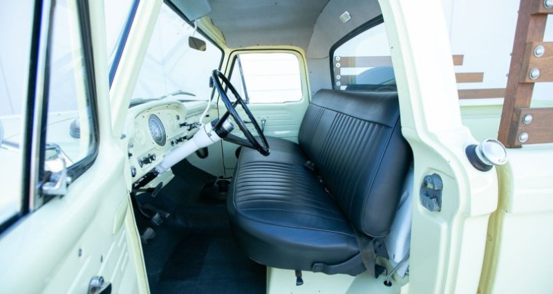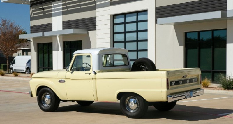 Cet véhicule est un pick-up Ford F-100 de 1966 de couleur jaune extérieur et noir intérieur. Il est équipé d'un moteur 6 cylindres en ligne de 3, 9L, d'une transmission manuelle à trois vitesses et d'une suspension Twin I-Beam avant et suspensions à feuilles arrière. Le véhicule a une chassis et carrosserie saines sans rouille, des freins assistés et un équipement supplémentaire comme un radiateur aluminium Champion, un réservoir de carburant de 19, 5 gallons en arrière du siège, des verrous de coffre et de couvercle, un système d'alarme, des portes à automatisme et des verrouillages sans clé, et un système de verrouillage. Le véhicule a une transmission solide, une puissance fiable, et une conduite confortable. L'extérieur a un patinage naturel, tandis que l'intérieur a un aspect esthétique de l'époque avec une planche de bord et des sièges en cuir noir. Le véhicule a été restauré entièrement en 2016 et a été conduit régulièrement depuis cette date. Les documents de l'entretien et la couverture d'automobile all-weather sont inclus.. Ce descriptif est basé sur les éléments communiqués par le propriétaire avec un traitement assisté. Merci pour votre indulgence en cas de formulation perfectible. Provenance : Texas. Disponibilité : 7 semaines, clés en main. 38 000 € tout compris (importation, taxes, procédure d'immatriculation). Annonce publiée le 11/11/2025