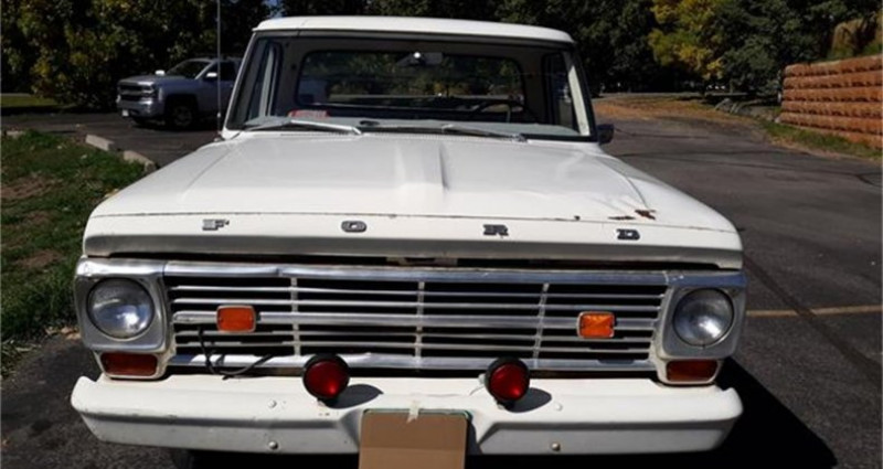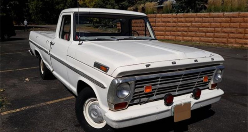 Ce 1969 Ford F100 camion pick-up est un véhicule d'occasion réchauffant pour les collectionneurs. Acheté dès les années 70 aux mains de son propriétaire original, il est resté dans la famille actuelle depuis lors. En conservé en réserve pendant près de quinze années, il a bénéficié d'entretiens complets, ce qui a permis à la voiture de démarrer sans aucun problème. Les travaux réalisés comprenaient la remplacement des lignes de frein et du réservoir à carburant. Bien qu'il présente quelques déformations mineures sur le corps du véhicule et des endommagements mineurs dans les puits de roues, la cabine et les éléments d'instrumentation sont intacts. Le béton de la benne montre des traces de rouille, mais possède encore des rainures. L'ancienne motorisation 360 fonctionne toujours très bien.. Provenance : Colorado, USA. Disponibilité : 7 semaines, clés en main. 20 500 € tout compris (import, taxes, procédure d'immatriculation). Annonce publiée le 12/11/2025