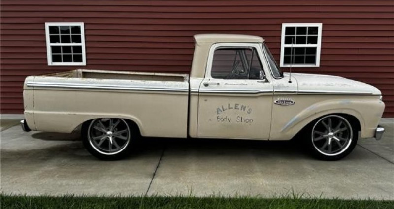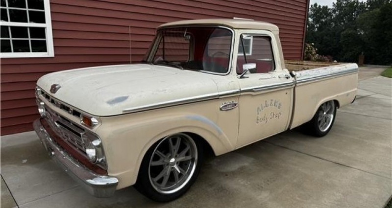 1966 Ford F100 Custom Cab Pickup, Stock #: 1068, Exterior Color: Tan, Interior Color: Red, Transmission: Manual, Engine: Inline 300 cid 6 Cyliner, Mileage: 54, 675, Vehicle Original VIN : F10AN788527, 20 American Racing wheels, 275/40R20 front tires, 290/40R20 rear tires, three on the tree Inline 300 cubic inch Industrial six cylinder, Offenhauser Aluminum intake, Four barrel carburetor, Single exhaust, Twin I-Beam Front Suspension, Rear Leaf Springs, Lowered, Manual brakes, Four Wheel drum brakes.. Provenance : North Carolina. Disponibilité : environ 7 semaines, clés en main. 32 000 € tout compris (importation, taxes, procédure d'immatriculation). Annonce publiée le 24/11/2025