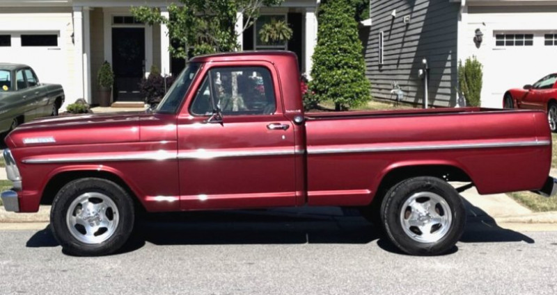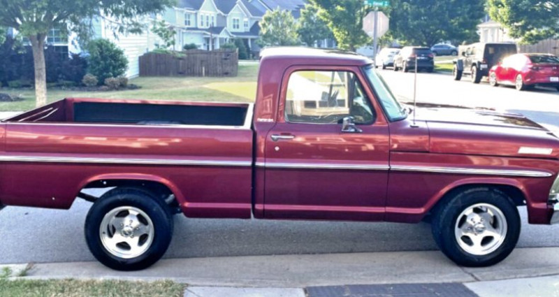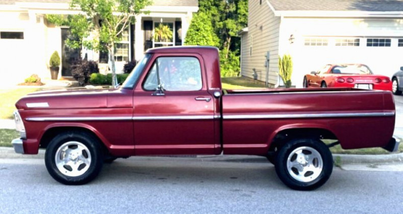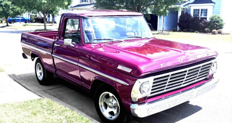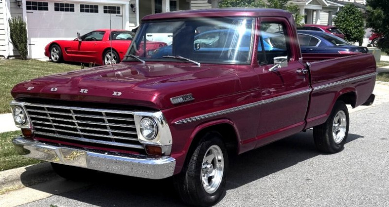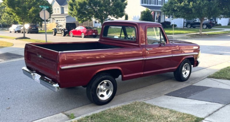 F10YCBXXXXX • F-100 • 352ci motor • Ontario Assembly Plant • Custom Cab bench seat - red petti-crush vinyl and red leads pattern woven plastic • 3 speed Ford Light Duty Transmission • 17 • Ford Rear Axle with a 3.25 Ratio • Fully rebuilt motor • New rims and tires • SSB front disc brakes • SSBC Front disc conversion kit • Solid body • Nice paint • New bench seat, carpet, seat belts, door seals, stereo and speakers, shocks, rear leaf springs, U-joint, battery, aluminum radiator, valve covers, air cleaner and cover, plugs, wires, ignition, sound proofing, emergency brake, horn, steering wheel • All lights, horn and wipers work properly • $30k plus (from dealers). Provenance : North Carolina. Disponibilité : environ 7 semaines, clés en main. 33 500 € tout compris (importation, taxes, procédure d'immatriculation). Annonce publiée le 25/11/2025