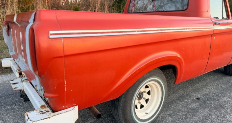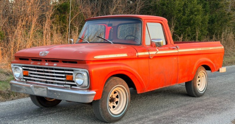 1963 Ford F100 UnibodyTruck, 223 straight 6 engine, 3 speed on the column transmission, aftermarket AC, fuel tank relocated to bed, decent looking driver, rust patched tailgate and floors, clean Oklahoma title, Stonewall, OK, $12, 000, non-refundable $500 deposit, cash, cashier check, wire transfer, D&H Classics, LLC. Provenance : Oklahoma. Disponibilité : environ 7 semaines, clés en main. 19 000 € tout compris (importation, taxes, procédure d'immatriculation). Annonce publiée le 27/11/2025