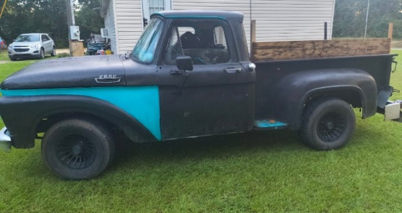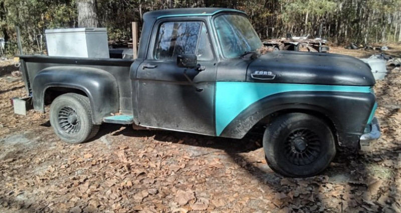 1963 Ford F100, 3 on the tree manual transmission, straight 6 cylinder engine, 15-in tires and rims, brake line snapped on right side, some rust on outside passenger corner, all original motor.. Provenance : Georgia. Disponibilité : environ 7 semaines, clés en main. 31 000 € tout compris (importation, taxes, procédure d'immatriculation). Annonce publiée le 30/11/2025