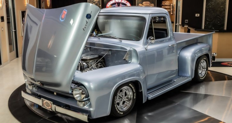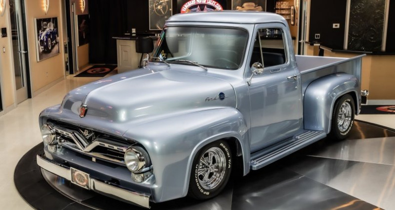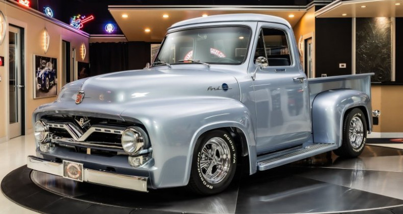 - Marque : Ford - Modèle : F100 Pickup - Année : 1955 - Couleur extérieure : Blue métallisé clair - Couleur intérieure : Blue - Mileage : 5 268 miles - Moteur : 350 ci V8 Chevrolet - Boîte de vitesses : Transmission TH350, 3 vitesses automatique - Suspension : Suspension indépendante Mustang 2 Style (avant) - Autres équipements : Air conditionné, freins à disque avant, ventilateur électrique, roues Cragar, pneus BFGoodrich Radial T/A, etc.. Provenance : Michigan. Disponibilité : environ 7 semaines, clés en main. 127 000 € tout compris (importation, taxes, procédure d'immatriculation). Annonce publiée le 10/12/2025
