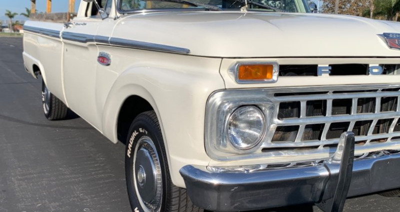 - Année : 1965 - Modèle : Ford F100 Pickup - Moteur : 352 V8 - Boîte de vitesses : Automatique à 3 vitesses - Options : Climatisation, direction assistée, contrôle de vitesse - Couleur : Peinture blanche Wimbledon (originellement Peacock) - État : Excellent, avec quelques petits défauts de peinture et une dent sur la capote - Travaux : Restauration avec un investissement de près de 30 000 $ - Travaux sur la transmission : Swap de la boîte manuelle à 4 vitesses pour une boîte automatique à 3 vitesses - Accessoires : Boîte à outils verrouillée Husky dans la benne, visière personnalisée, voltmètre, tachymètre et manomètre d'huile montés sur le tableau de bord. Provenance : California. Disponibilité : environ 7 semaines, clés en main. 24 000 € tout compris (importation, taxes, procédure d'immatriculation). Annonce publiée le 20/12/2025