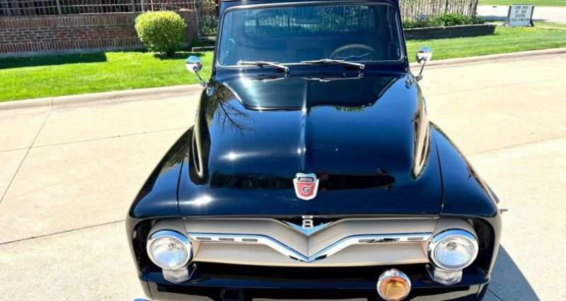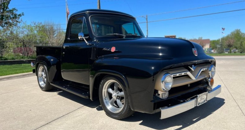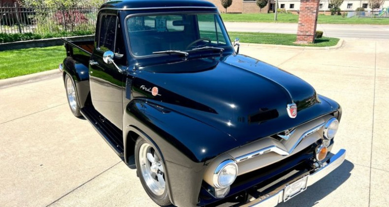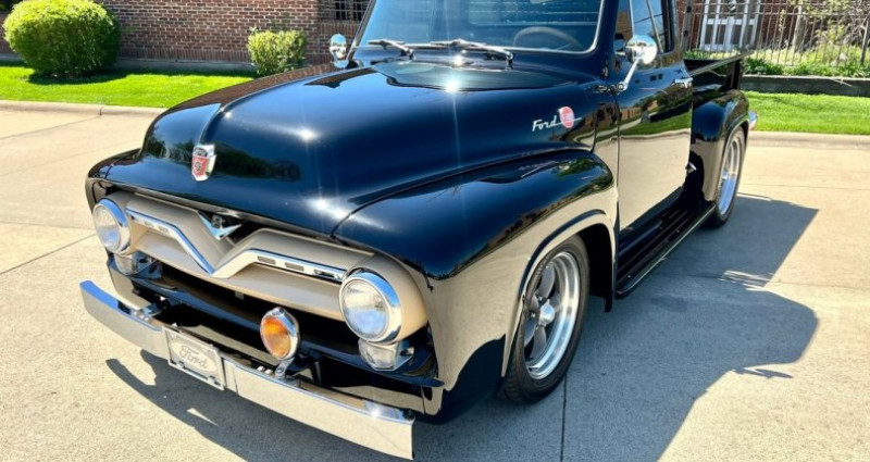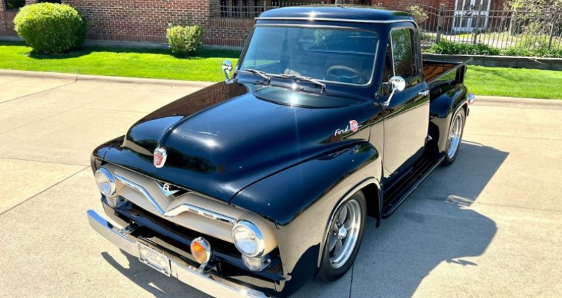 - Marque : Ford - Modèle : F100 - Année : 1955 - Numéro d'inventaire : 59345 - Couleur extérieure : Noir - Couleur intérieure : Tan - Type de carrosserie : Pick-up - Moteur : 350CI - Boîte de vitesses : 3 vitesses automatique (TH350) - Drivetrain : RWD - Kilométrage : 28, 125 miles - Rear end : 10 bolt avec couvercle en aluminium fini - Échappement : Double échappement - Climatisation : Oui - Fenêtres électriques : Oui - Freinage : Freinage assisté par hydraulique - Roues : American Racing Grey - Vitesse : 18 (avant) et 20 (arrière) - Siège : Cuir personnalisé - Panneaux de porte et toit : Personnalisés et correspondants - Valve covers et air cleaner : Aluminium poli - Panneau de tableau de bord : BDO - Radio : AM/FM - Restauration : Restauration complète - Restauration de corps entier - État : Restauration de haute qualité - Prix : $62, 900 (prix de vente direct) - Financing disponible (paiement de 7, 000$ à l'avance requis) - Adresse de vente : 32950 Utica Rd, Fraser, MI, États-Unis. Provenance : Michigan. Disponibilité : environ 7 semaines, clés en main. 65 000 € tout compris (importation, taxes, procédure d'immatriculation). Annonce publiée le 26/12/2025
