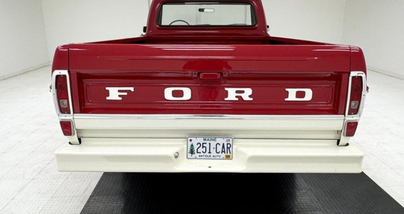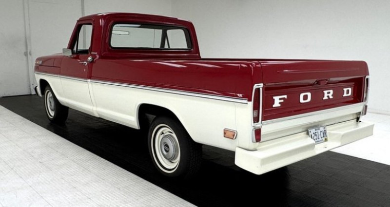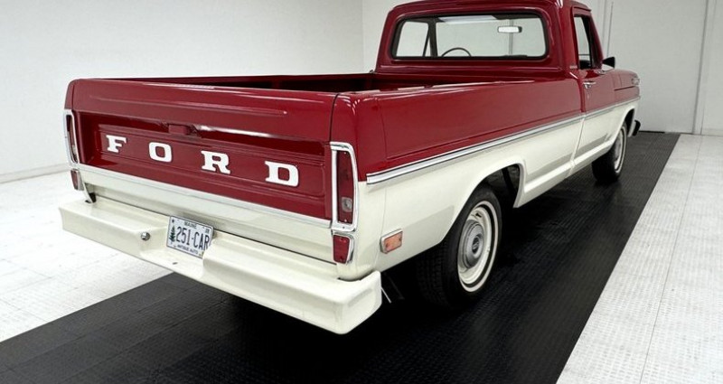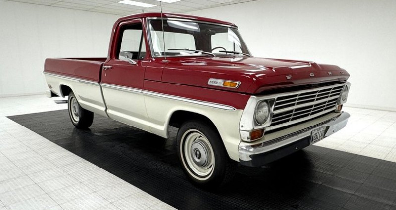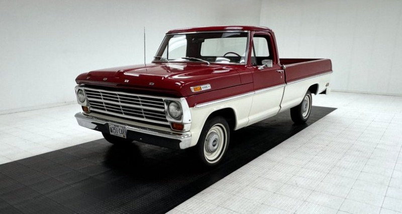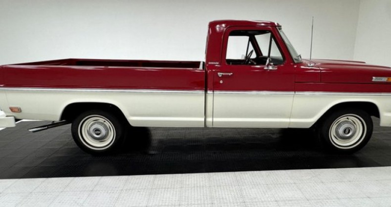 - Année : 1969 - Modèle : Ford F100 Long Bed Pickup - Couleur extérieure : Candy Apple Red / Wimbledon White - Couleur intérieure : Rouge - Moteur : 302ci V8, 205 ch - Boîte de vitesses : Manuelle à trois rapports - Kilométrage : 65 386 miles (le kilométrage réel est inconnu) - Suspension : Coil springs avant / Feuilles arrière - Freins : Freins à tambour sur les quatre roues - État général : Très bon état, quelques imperfections sur la peinture et le chrome. Provenance : , USA. Disponibilité : environ 7 semaines, clés en main. 31 500 € tout compris (import, taxes, procédure d'immatriculation). Annonce publiée le 27/12/2025