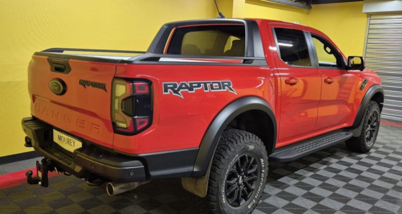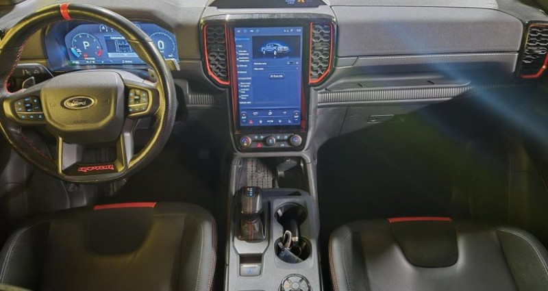 ======= OPTIONS ======= Peinture Orange Raptor ======= EQUIPEMENTS DE SERIE ======= 3ème feu stop arrière ABS (Antiblocage de roues) Active Park assist avancé avec fonction freinage Aide au maintien dans la voie Airbag frontaux conducteur et passager Airbag genoux côté conducteur et passager Airbags latéraux, conducteur et passager avant Airbags thorax, conducteur et passager avant Alarme volumétrique Allumage automatique des projecteurs Anti-démarrage électronique (PATS) Antipatinage Assistance au démarrage en côte (HSA) Assistance au freinage d'urgence Attelage remorque avec prise 13 broches Bac de protection plastique avec prise accessoire 12V Banquette 3 places, en rang 2 Bavettes AR Bavettes AV Blocage de différentiel arrière Blocage de différentiel avant Calandre spécifique Raptor Caméra 360° Chargeur à induction Climatisation automatique bi-zone Console centrale avec espace de rangement double formant accoudoir, deux porte-gobelets Console de pavillon avec plafonnier et lecteurs de carte Contrôle adaptatif de la charge (LAC) Contrôle de stabilité de la remorque (TSM) Contrôle dynamique de la trajectoire (ESP) Convertisseur 400W dans la benne avec prise 220V Crochets d'arrimage intérieurs de plateau modulable Dégivrage de la vitre arrière Eclairage d'ambiance à LED Eclairage extérieur 360° du véhicule Eclairage plafonnier arrière Essuie-glace à déclenchement automatique Essuie-glace avant à balayage intermittent variable et lave-glace Feu arrière antibrouillard Feux de freinage d'urgence - EBL Feux de jour Freinage automatique d'urgence Freins à disques ventilés à l'avant et à l'arrière Jantes alliage 17 x 8.5'' Dyno Grey et pneumatiques BF-Goodrich A T KO2 Tout Terrain LT 285 70R17 Lève-vitres avant électriques à descente par impulsion Limiteur de vitesse intelligent Marchepieds latéraux spécifiques Raptor Mode gestion Tout terrain (TMS) (Terrain Management System) Modem embarqué FordPass Connect Pack Technologie 20 Pare-brise chauffant Pare-chocs arrière acier peint avec marchepied Parechocs avant avec plaque de protection aluminium Passages de roues élargis Phares à LED Matrix intelligents Plancher moquette dans l'espace passagers Plaques de pas de porte spécifiques Raptor Plateau en acier avec protection renforcée et ridelle arrière rabattable verrouillable Poche aumônière au dos du siège conducteur Poignées de portes et de ridelles arrières noires Points d'ancrage ISOFIX Pommeau de levier de vitesses en cuir Portes arrière Prise 12V à l'arrière Projecteurs antibrouillard à LED Réglage des phares en hauteur Régulateur de vitesse adaptatif Régulateur de vitesse adaptatif intelligent (i-ACC) Rétroviseur intérieur électrochrome Rétroviseurs extérieurs couleur carrosserie avec éclairage du sol et répétiteurs de clignotants Rétroviseurs extérieurs réglables et rabattables électriquement et chauffants Reconnaissance des panneaux de signalisation Ridelle à verrouillage électrique Roue de secours aluminium avec cric Sellerie cuir et Alcantara spécifique Raptor Sièges conducteur et passager électriques réglables 10 positions Sièges conducteur et passager chauffants Système anti-collision avec freinage d'urgence Système audio SYNC 4 avec DAB, GPS, 2 ports USB, 10HP B&O, écran tactile couleur 12 Système d'avertissement anticollision Système de contrôle de la descente (HDC) Système de protection anti-retournement (ROM) Système pré-collision (PCS) Tapis de sol spécifique Raptor Trappes à carburant sans bouchon Ford Easy Fuel Verrouillage centralisé double à commande à distance Vitres arrière électriques Volant réglable en hauteur Volant spécifique Raptor avec palettes de commande de transmission Nb. Vitesses : 10 Conso Mixte : l/100