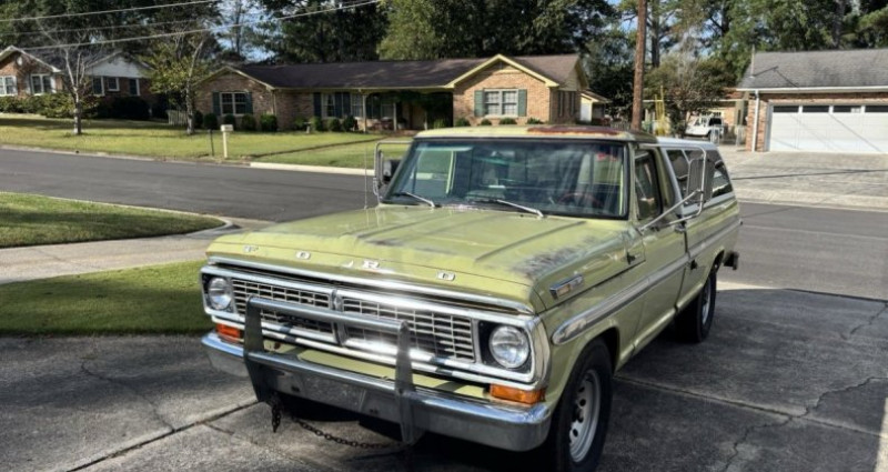 Le véhicule en question est un 1970 Ford F250 Ranger Camper Special, presque irréprochable depuis sa sortie de usine avec seulement 40 500 miles enregistrés. Il a été appartenu à une seule famille depuis sa vente nouvelle à Las Vegas, Nevada et a servi de camping-car pour cette famille jusqu'à la fin des années 80, avant d'être mis en stockage en Nevada. Le véhicule a été transporté en Alabama en 2018 pour un usage occasionnel. Depuis, les entretiens réguliers ont été réalisés par YES Automotive à Huntsville. Il est équipé du FE390 V8 moteur, d'une ignition Petronix et d'une transmission automatique C6. Il dispose également de freins et de direction de série fabriqués par la Ford, d'un climatiseur déposé dès son année de production (1970) et d'une boîte audio personnalisée AutoSound avec AM/FM/Bluetooth. Il est presque entièrement rust-free et les pneus de 16 pouces ont moins de 1000 miles depuis leur fabrication. Les freins, la direction, le changement d'huile, une peinture semi-durables de Patina clear coat et d'autres mises à jour ont été récemment effectuées. Ce véhicule peut être considéré comme un véritable capsule de temps prêt pour vos aventures.. Ce descriptif est basé sur les éléments communiqués par le propriétaire avec un traitement assisté. Merci pour votre indulgence en cas de formulation perfectible. Provenance : Alabama. Disponibilité : 7 semaines, clés en main. 22 000 € tout compris (importation, taxes, procédure d'immatriculation). Annonce publiée le 12/10/2025