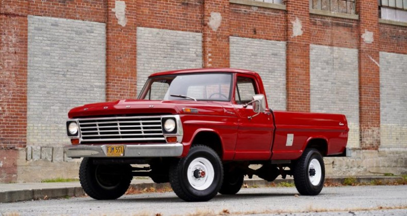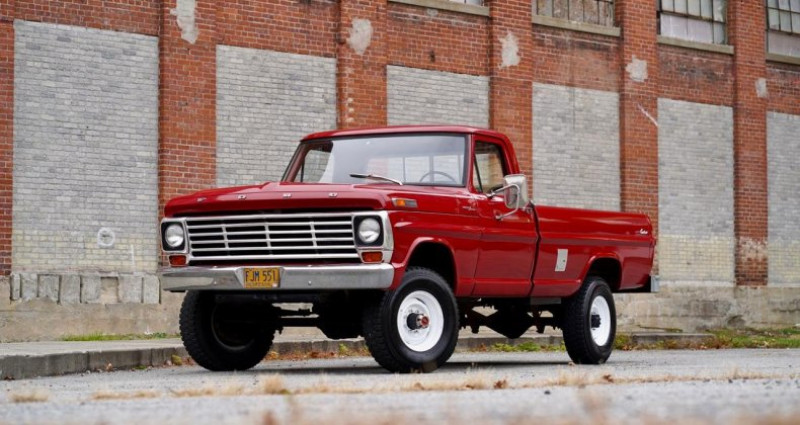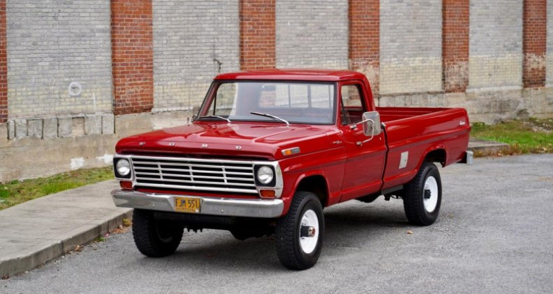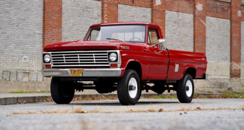 Le 1972 Ford F-250 Highboy 4x4 est doté d'un moteur V8 de 360 chevaux fabriqué en usine et fonctionne parfaitement en combinaison avec la transmission manuelle originale à quatre vitesses. Le véhicule est revêtu de sa livrée originale, une peinture Candy Apple Red sur un intérieur en tissu lourd Noir/Rouge. Seuls 94 de ces modèles ont été produits avec ces codes de peinture et de revêtement. Le plateau de tableau de bord est intact. Le compteur affiche 95 000 miles originaux. Un rapport Marti est inclus. Cette Ford de San Jose a été vendue originellement à Lebanon, en Oregon, et a passé toute sa vie dans cet État jusqu'à son arrivée récente en Nouvelle-Angleterre. Titre propre. Corps exceptionnellement droit, sans aucun éclat, bonne peinture. Toutes les jauges fonctionnent comme il doit être. Plate-forme, pieds de voiture, cabine, panneau de charge et cadre sont solides, avec tout le métal original. Cette camionnette a été détenue et entretenue en Oregon par le même propriétaire depuis 1978 et n'a jamais été exposée au sel. Ce véhicule a été produit le 27 septembre 1971, sept jours avant la date prévue. C'est un Highboy tournant clé prêt à trouver une nouvelle demeure. Il roule actuellement sur les roues originales Ford amarrées, roue de secours inclus. Des vidéos de démarrage et de conduite peuvent être vues à la demande. Des arrangements de transport ou une conduite à domicile peuvent être organisés.. Provenance : Massachusetts, USA. Disponibilité : 7 semaines, clés en main. 42 500 € tout compris (import, taxes, procédure d'immatriculation). Annonce publiée le 04/11/2025