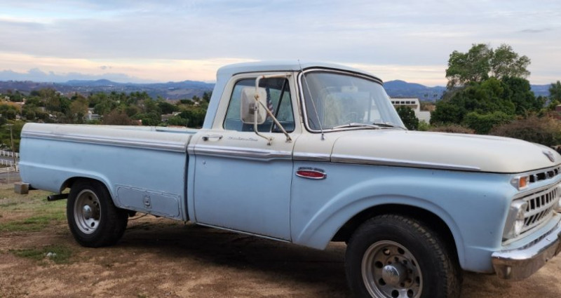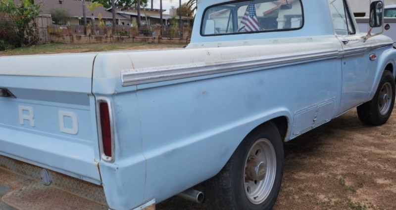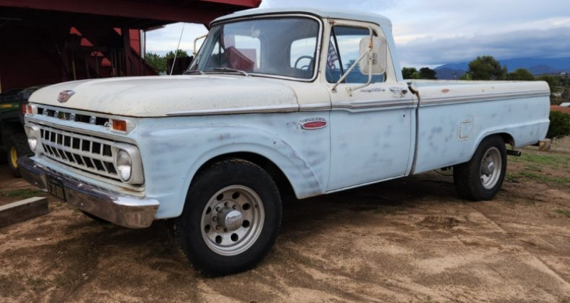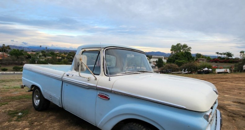 1965 Ford F250 Long Bed 2WD, V8 Automatic, Camper Special, Manual steering & Drum Brakes upgraded to power steering & front disk power brakes, Heads taken off and put hardened seats to upgrade the motor to accept unleaded gas, Aluminum Hi-rise intake and performance carburetor added, Newer dual exhaust from the engine all the way back, Original: paint, drive train/ engine & transmission, interior, chrome & aluminum, 48, 186 most original miles, Always a California truck! Not exposed to years of snow, etc. Always had a camper on it, Excellent bed condition (no dents).. Provenance : California. Disponibilité : environ 7 semaines, clés en main. 21 000 € tout compris (importation, taxes, procédure d'immatriculation). Annonce publiée le 25/11/2025