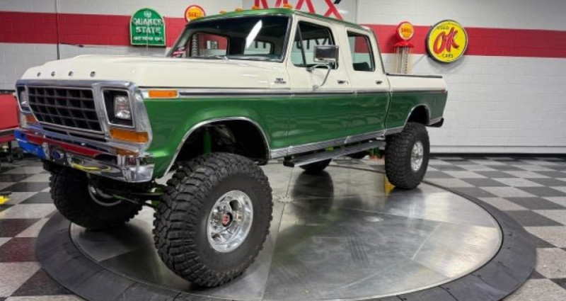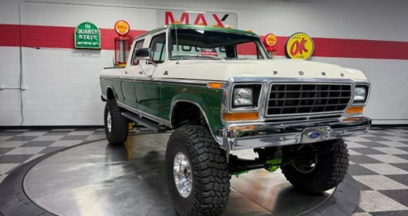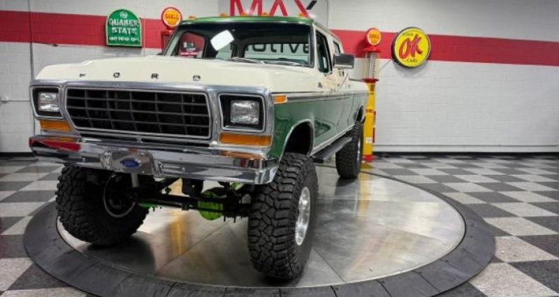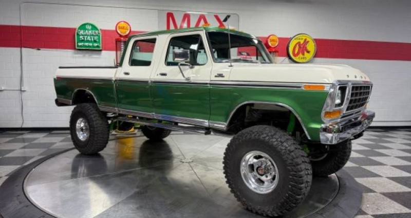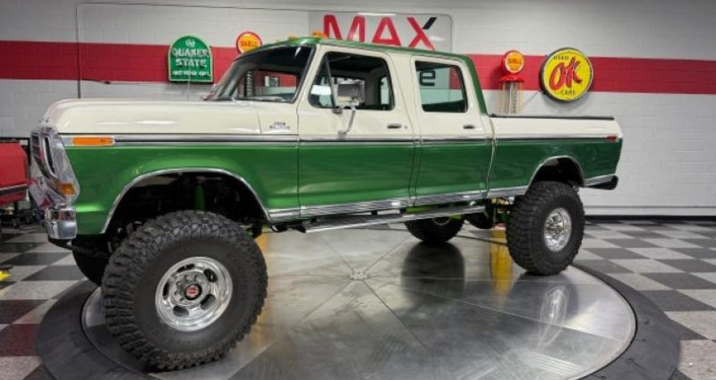 1978 Ford F250, Stock #: V1806, Body Type: Pickup, Transmission: Manual, Drivetrain: 4WD, Engine: 460 V8, Mileage: 69, 846, Rebuilt ZF 5-speed manual transmission 2025, 1990 F350 Drive train and wiring harness with ABS and working Check engine light, Ceramic coated dual exhaust, Borg Warner 1356 transfer case, 6 sky jacker suspension lift, 3 body lift, 40X13.5x17 Cooper tires, Indy 17x10 Mag Slots wheels, Fuel injected 460 engine, 4 core aluminum radiator, Factory crew cab, Green cloth upholstery front and back, Wimbledon white over ivy glow paint, Chrome bumpers front and rear, Sterling 10.25 rear end, Front end Dana 44, 410 gear ratio, Lumbar seats front and rear. Provenance : Pennsylvania. Disponibilité : environ 7 semaines, clés en main. 82 000 € tout compris (importation, taxes, procédure d'immatriculation). Annonce publiée le 25/11/2025