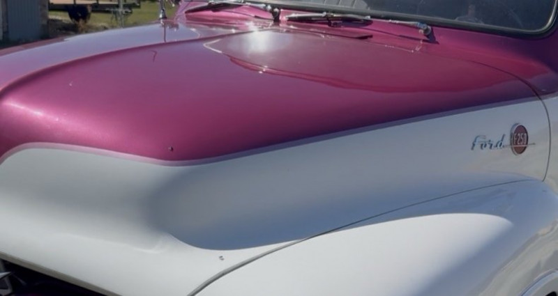 - Année : 1955 - Modèle : F250 - Moteur : 350 small block - Carburateur : Edel Brock - Freinage : Aide à la direction de direction - Transmission : 4 vitesses manuelle sur le sol - Châssis : Long-bed converti en short-bed - Peinture : Peinture personnalisée - Intérieur : Mise en oeuvre intérieure modeste - Jantes : Jantes chromées avec échappement amélioré à double échappement. Provenance : Utah. Disponibilité : environ 7 semaines, clés en main. 27 000 € tout compris (importation, taxes, procédure d'immatriculation). Annonce publiée le 21/12/2025