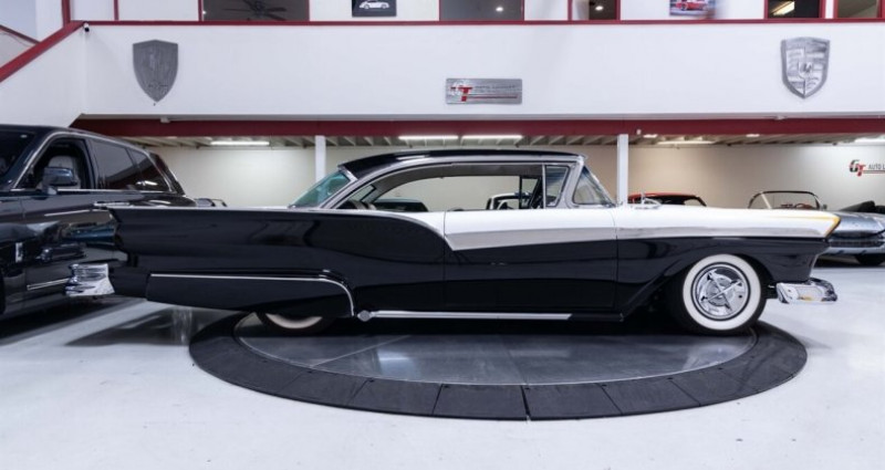 Le modèle en question est un Ford Fairlane Custom de 1957, à toit fermé deux portes, de couleur deux tons blanc/noir. Il est doté d'un moteur V8 de 312 pouces cubiques associé à une transmission automatique. Ce Fairlane a été construit par Pagano Rod & Custom, située à Rancho Cordova, en Californie. Les caractéristiques notables de ce véhicule incluent l'air conditionné, les freins à disques à puissance, une radio Autosound personnalisée, le volant et les panneaux de portes ainsi que le trim extérieur tourné, le kit Continental, les manettes de portes cachetées avec soufflets, les tuyaux de Lake recédés dans les pare-chocs, les projecteurs rentrés et les feux arrière recédés, ainsi que de nombreuses autres options. Ce Fairlane est prêt à être utilisé et apprécié à plein régime ! Pour plus d'informations, voir les photographies completes et les détails techniques, veuillez consulter la page web donnée.. Ce descriptif est basé sur les éléments communiqués par le propriétaire avec un traitement assisté. Merci pour votre indulgence en cas de formulation perfectible. Provenance : California. Disponibilité : 7 semaines, clés en main. 53 500 € tout compris (importation, taxes, procédure d'immatriculation). Annonce publiée le 02/10/2025