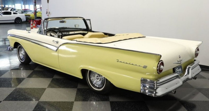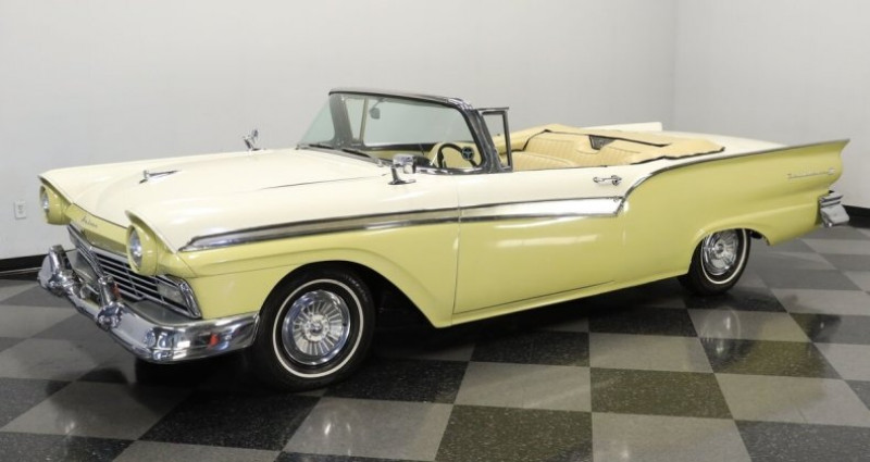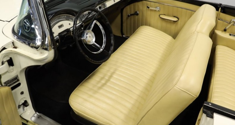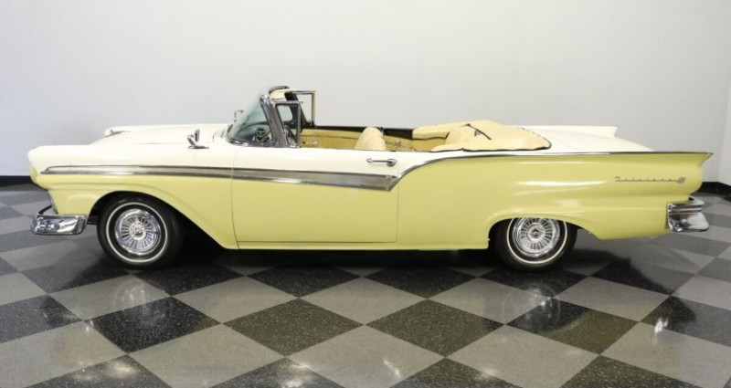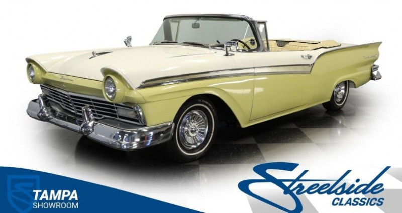 Ce véhicule en vente est un Ford Fairlane 500 Sunliner de 1957 équipé d'un moteur V8 de 390 cu in, équipé d'une injection d'essence Holley Sniper électronique, d'une transmission automatique à 3 vitesses C6, ainsi que d'un freinage et d'un direction assistés. Le véhicule dispose également d'un système d'échappement double avec des tuyaux d'échappement à l'effet de verre, d'un ventilateur de refroidissement actionné par ceinture et d'un radiateur standard, d'une peinture fraîche sur le bloc moteur, de peinture à deux tons jaune clair et blanc colonial sur la carrosserie, d'un toit convertible en cuir noir et d'un siège avant split-bench en cuir marron clair. Le véhicule est équipé de roues de 14 pouces avec des hubcaps Ford, de pneus radiaux Goodyear de 205/75R14, de boucliers avant et arrière en chrome, de bande chromée et d'un récepteur radio AM. Le véhicule est présenté dans notre magasin de Tampa, situé à 20 miles au nord de Tampa, en Floride.. Ce descriptif est basé sur les éléments communiqués par le propriétaire avec un traitement assisté. Merci pour votre indulgence en cas de formulation perfectible. Provenance : Florida. Disponibilité : 7 semaines, clés en main. 37 500 € tout compris (importation, taxes, procédure d'immatriculation). Annonce publiée le 05/11/2025