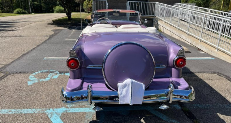 - Année : 1955 - Modèle : Ford Sunliner Convertible - Moteur : 272 V8 reconstruit, 5 000 miles - Boîte de vitesses : 3 vitesses standard shift, transmission complètement réparée - Échappement : Échappement silencieux double - Steering : direction assistée - Refrigerant : Refrigerant et tuyauteries neufs - Couleur : Regency Purple (peinture code M) - Roues : Coker wide white wall radials - Kilométrage : 18 902 miles (peut-être 118 902 miles) - Top : Top blanc fonctionne correctement - Boîte à bagages : Boîte à bagages en bon état - Vitre : Verre teinté - Kit continental : présente - État général : quelques imperfections mineures - Intérieur : intérieur très attrayant - Lift : si le véhicule est soulevé, vous sourirez - Provenance : originaire du mid-west - Trunk lid : porte-bagages avec l'inscription overdrive - Compliments : reçoit un grand nombre de compliments - Voyage : a effectué un voyage de 200 miles sans problème - Titre et assurance : titré et assuré dans mon nom. Provenance : Pennsylvania. Disponibilité : environ 7 semaines, clés en main. 44 500 € tout compris (importation, taxes, procédure d'immatriculation). Annonce publiée le 07/12/2025
