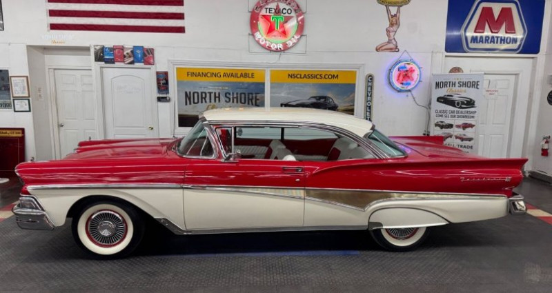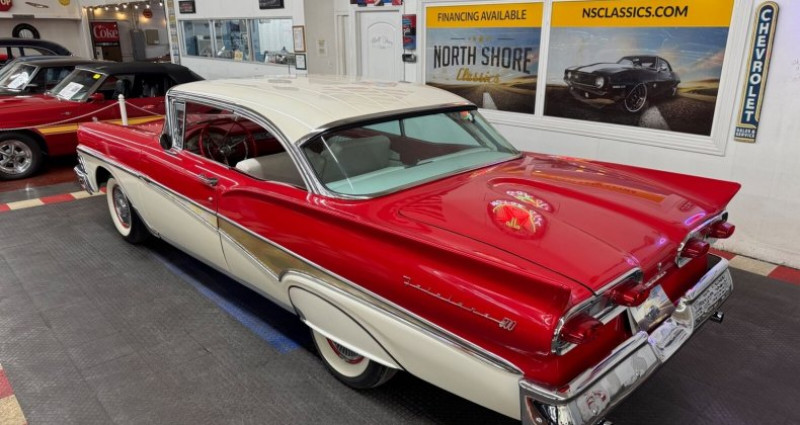 - Marque : Ford - Modèle : Fairlane 500 - Année : 1958 - Couleur extérieure : Rouge - Couleur intérieure : Rouge - Type de carrosserie : 2 portes - Transmission : Automatique à 2 vitesses - Moteur : 332 ci V8 - Freins : Freins à tambour sur les quatre roues - État général : Bon état de conduite, prêt pour les soirées de voitures de collection - Réservoir à carburant neuf - Pompe à carburant neuf - Plancher et panneau de châssis en bon état - Siège intérieur et toit en bon état - Pas de garantie - Numéro d'inventaire : 58751RGCV - Contact : 847-393-7887. Provenance : Illinois. Disponibilité : environ 7 semaines, clés en main. 33 500 € tout compris (importation, taxes, procédure d'immatriculation). Annonce publiée le 08/12/2025