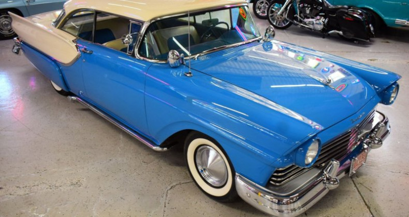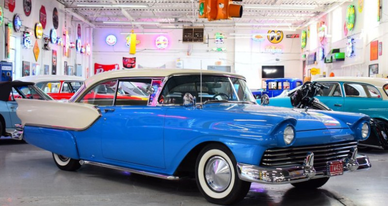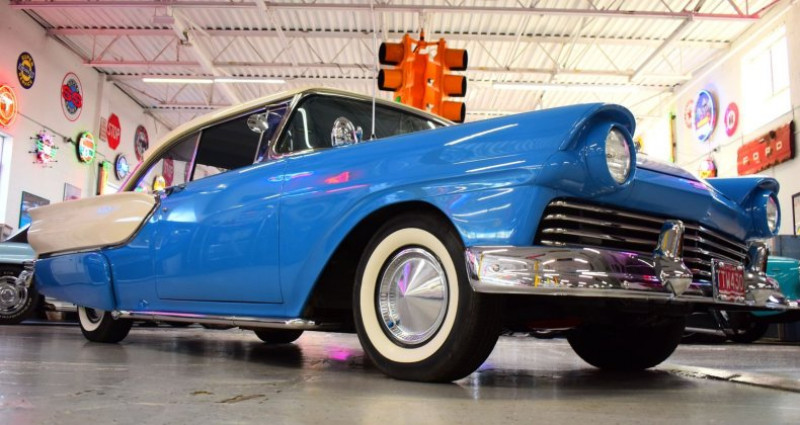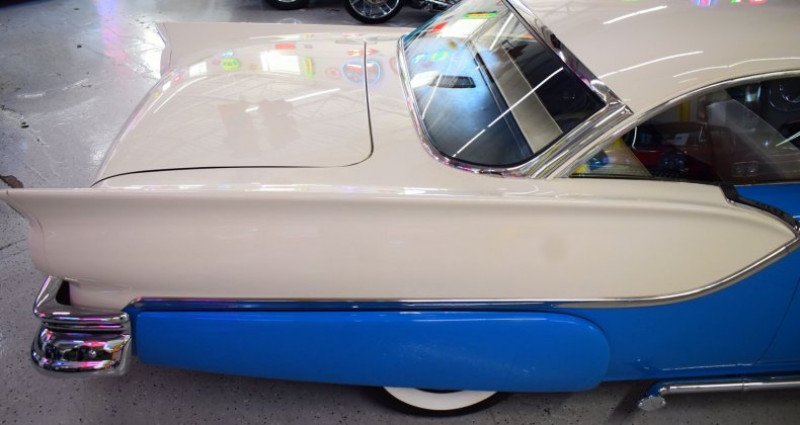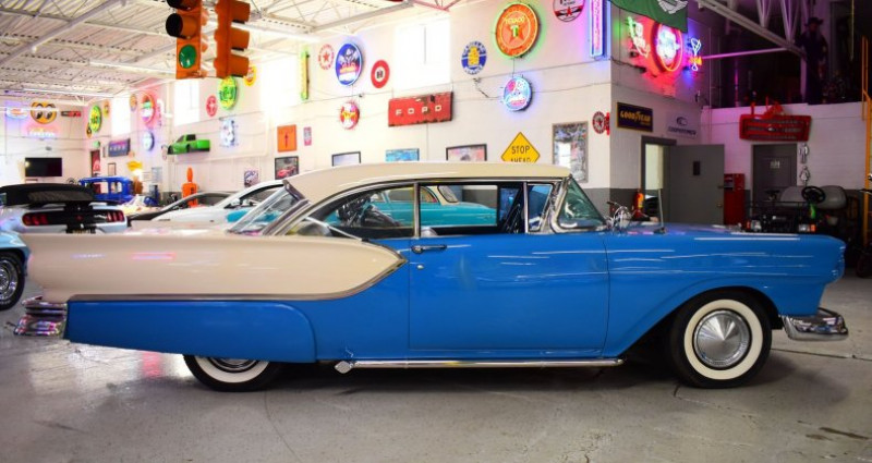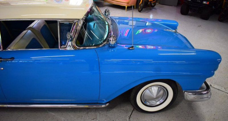 - Année : 1957 - Couleur extérieure : deux-ton bleu et blanc - Couleur intérieure : bleu et blanc - Moteur : 312ci V8 - Boîte de vitesses : 3 vitesses manuelle avec surmultiplication (3 on the tree) - Carburateur : 4-barrel - Tube-style grille avant - Faux échappements latéraux - Cruiser-style fender skirts - Documentation exceptionnelle (manuels d'utilisateur originaux, livrets de fabrication, documents historiques). Provenance : Michigan. Disponibilité : environ 7 semaines, clés en main. 38 000 € tout compris (importation, taxes, procédure d'immatriculation). Annonce publiée le 10/12/2025