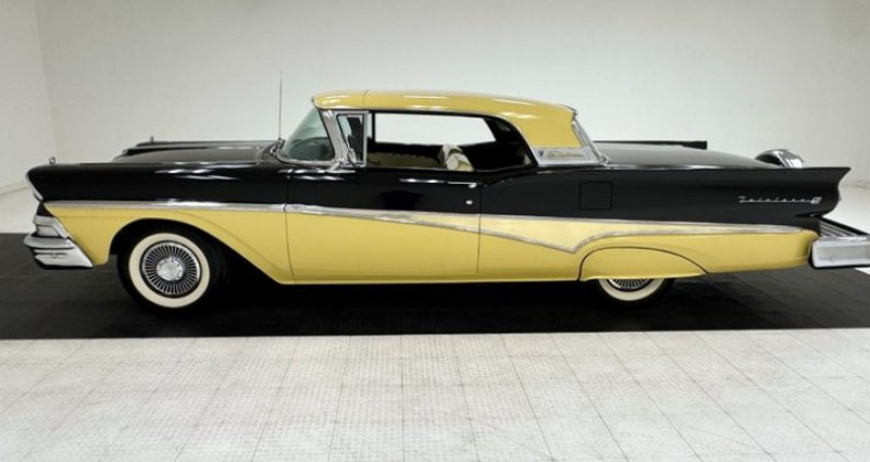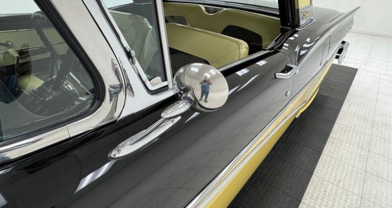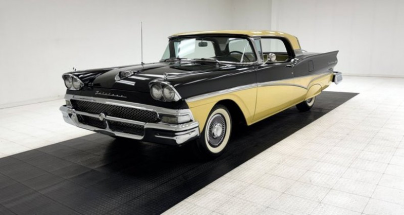 - Année : 1958 - Modèle : Ford Fairlane 500 Skyliner - Couleur : Noir (Raven Black) et Jaune (Sun Gold) - Moteur : 8 cylindres en ligne de 352 ci, 300 ch - Boîte de vitesses : Automatique à 3 vitesses (Cruise-O-Matic) - Kilométrage : 609 miles (kilométrage réel inconnu) - Travaux : Restauration par RM Motors, vainqueur de l'AACA Senior Award et du David E. Davis Award en 2005 - État : Sortie d'un sommeil de 15 ans, en attente d'un nouveau propriétaire - Équipement : Continental kit, intérieur en vinyle jaune et noir, pare-chocs chromés, roues de 14 pouces - État de la carrosserie : Imperfections comme des éraflures, blemishes dans le chrome, une fissure dans la peinture sur le panneau latéral et un ding sur le panneau doré.. Provenance : , USA. Disponibilité : environ 7 semaines, clés en main. 76 000 € tout compris (import, taxes, procédure d'immatriculation). Annonce publiée le 24/12/2025