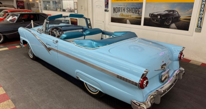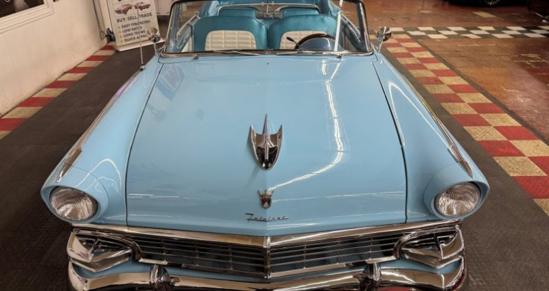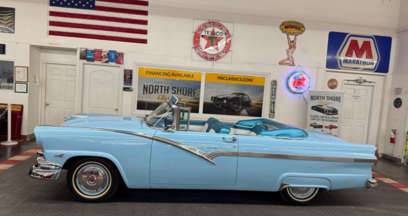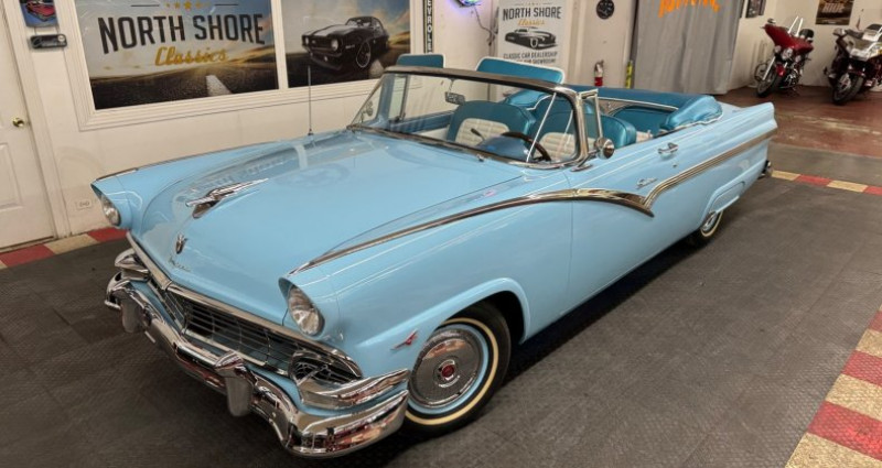 - Marque : Ford - Modèle : Fairlane - Type : Convertible - Année : 1956 - Couleur extérieure : Bleu - Couleur intérieure : Bleu / Blanc - Transmission : Automatique - Moteur : 312 - Kilométrage : 98 644 - Vendeur : North Shore Classics (844 652-8767). Provenance : Illinois. Disponibilité : environ 7 semaines, clés en main. 48 000 € tout compris (importation, taxes, procédure d'immatriculation). Annonce publiée le 30/12/2025