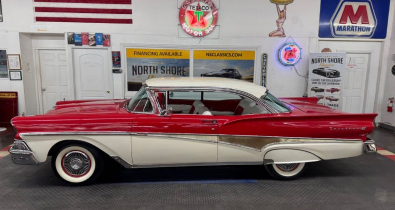 - Marque : Ford - Modèle : Fairlane 500 - Année : 1958 - Couleur extérieure : Rouge - Couleur intérieure : Rouge - Type de carrosserie : 2 portes - Transmission : Automatique à 2 vitesses - Moteur : 332 ci V8 - Freins : Freins à tambour sur les quatre roues - Kilométrage : 18 258 miles (non converti) - Réservoir à carburant neuf - Pompe à carburant neuf - Plancher et panneau de coffre en bon état - Intérieur en bon état - Véhicule prêt à circuler pour les soirées de cruise - Équipe de vente spécialisée dans les voitures classiques/muscle - Véhicule disponible sur eBay Motors. Provenance : Illinois. Disponibilité : environ 7 semaines, clés en main. 30 500 € tout compris (importation, taxes, procédure d'immatriculation). Annonce publiée le 30/12/2025