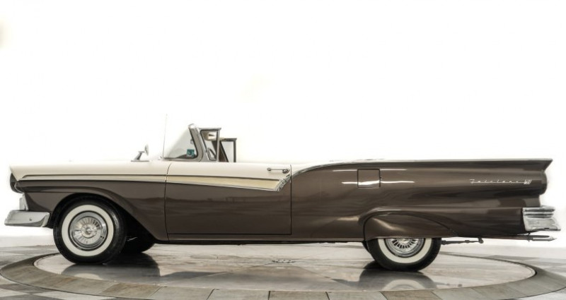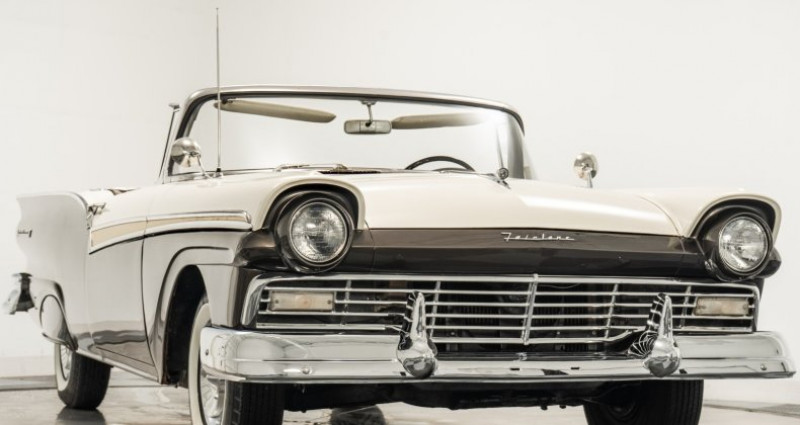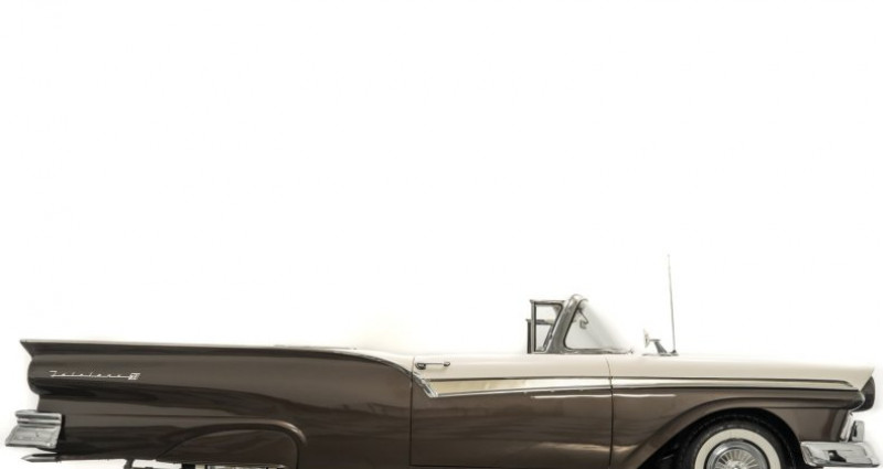 - Marque : Ford - Modèle : Fairlane Skyliner - Année : 1957 - Couleur extérieure : Colonial White/Silver Mocha Iridescent - Couleur intérieure : Brown Airweave - Type de carrosserie : Coupe - Moteur : 312ci OHV V8 - Boîte de vitesses : 3 speed Fordomatic - Kilométrage : 93, 832 miles (non converti en kilomètres) - Équipements : 15 pouces de roues avec couvercles de roues complètes, échappement double, direction assistée, radio AM, horloge électrique, sièges en tissu et cuir, toit repliable rigide et plus encore. Provenance : Ohio. Disponibilité : environ 7 semaines, clés en main. 50 000 € tout compris (importation, taxes, procédure d'immatriculation). Annonce publiée le 30/12/2025