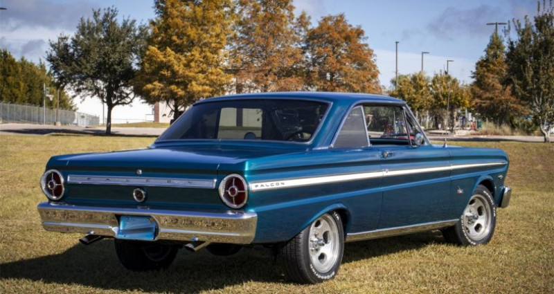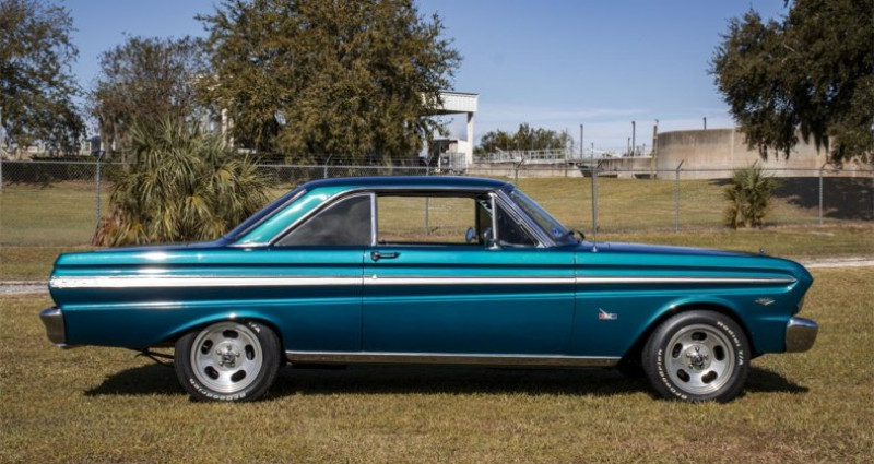 Un véhicule de collection de marque Ford, le Falcon Futura de 1965, est mis en vente, présentant un compteur d'environ 57 000 miles. Cette version 2-door Hardtop est dotée d'un moteur Ford 4.7L 289 V8 et d'une transmission automatique C4. Le moteur est équipé d'un système Holley 600CFM 4BBL et de freins à disques à l'avant. La voiture a été récemment restaurée, y compris la peinture de la carrosserie et du coffre, dans une teinte Twilight Turquoise Metallic. Les éléments extérieurs en acier inoxydable et chromé ont été polis. Des fenêtres sombres ont également été ajoutées et des roues de 15 pouces American Racing Ansen Sprint ont été montées avec des pneus BFGoodrich Radial. Le moteur a également été amélioré avec des Falcon Valve Covers, des tuyaux d'échappement courbés, des silencieux Flowmaster et une barre antiroulis améliorée à l'avant. Le véhicule présente également un intérieur restauré avec deux tons de teinture Turquoise, un volant à trois branches Falcon Sprint, des revêtements de sièges et des équipements de mesure de température d'eau et de pression d'huile ainsi qu'un système de climatisation Vintage Air A/C sous dashboard et une radio numérique Classic Autosound. La voiture est également équipée d'une roue de secours complète.. Provenance : Florida, USA. Disponibilité : 7 semaines, clés en main. 34 500 € tout compris (import, taxes, procédure d'immatriculation). Annonce publiée le 04/11/2025
