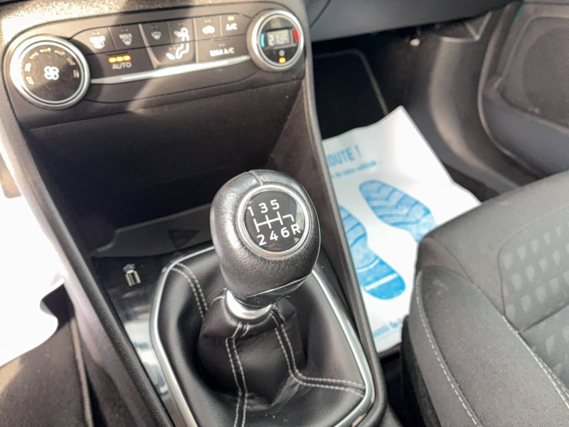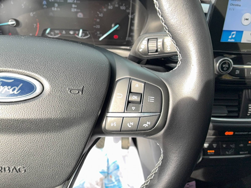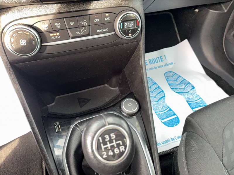 3ème appui-tête AR / Aide au maintien dans la voie / Alerte d'oubli de ceintures de sécurité AV et AR / Alerte vigilance du conducteur / Becquet AR couleur carrosserie / Bouton de démarrage "Ford Power" / Console centrale avec accoudoir et rangement intégré - inclus éclairage d'ambiance intérieur / Contour de grille de calandre chromé / Désactivation de l'airbag passager / Eclairage d'ambiance intérieur / Environnement noir / Feux antibrouillard AV avec fonction cornering / Feux de jour automatiques / Garnissage intérieur avec environnement Noir Charcoal, Tissu Noir Charcoal avec coutures argent / Grille de calandre avec barres et contour chromés / Indicateur de changement de vitesse / Jantes alliage 16", pneumatiques 195/55 R16 / Kit de réparation pneumatique / Lèche-vitres chromés / My Key / Ordinateur de bord couleur 4,2" avec EcoMode / Pack 6,5'' / Pack Assistance 1 / Pack Visibilité / Pare-chocs couleur carrosserie / Poignées de portes extérieures couleur carrosserie / Réglage lombaire du siège conducteur / Rétroviseur intérieur électrochrome / Rétroviseurs électriques rabattables chauffants avec éclairage d'approche / Rétroviseurs extérieurs électriques et chauffants couleur carrosserie / Sellerie tissu noir Ellow avec renforts latéraux Domo / Système audio SYNC 3 avec écran tactile 6,5" compatible AppLink, Apple CarPlay et Androïd auto / Tapis de sol AR en velours / Tapis de sol AV / Trappe à carburant EasyFuel / Volant gainé cuir 3 branches / Volant, soufflet de levier de vitesse et frein à main en cuir