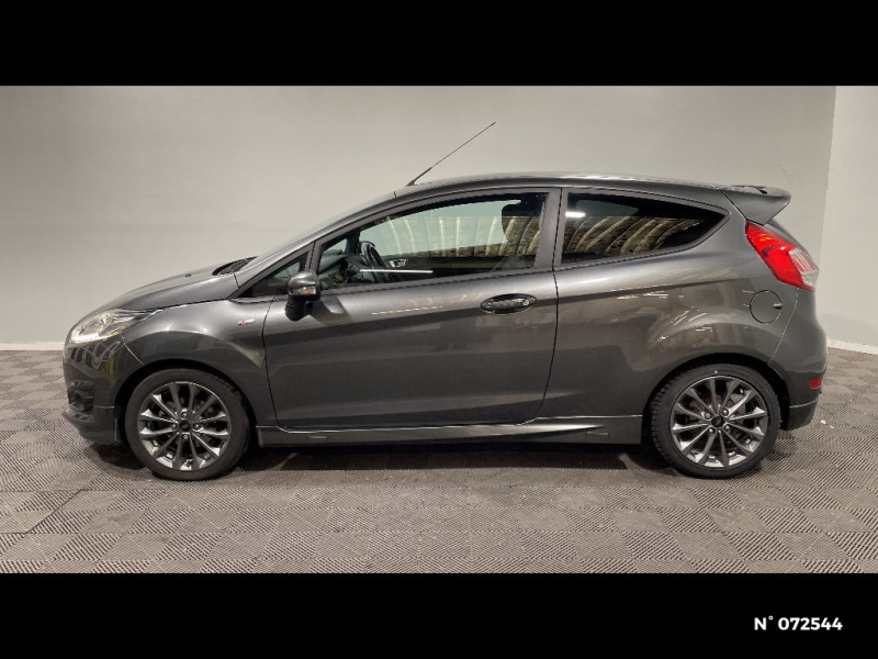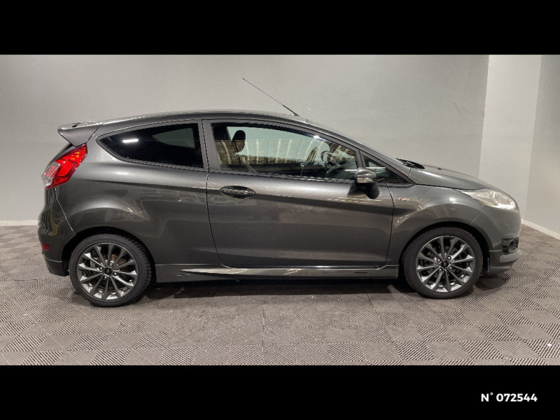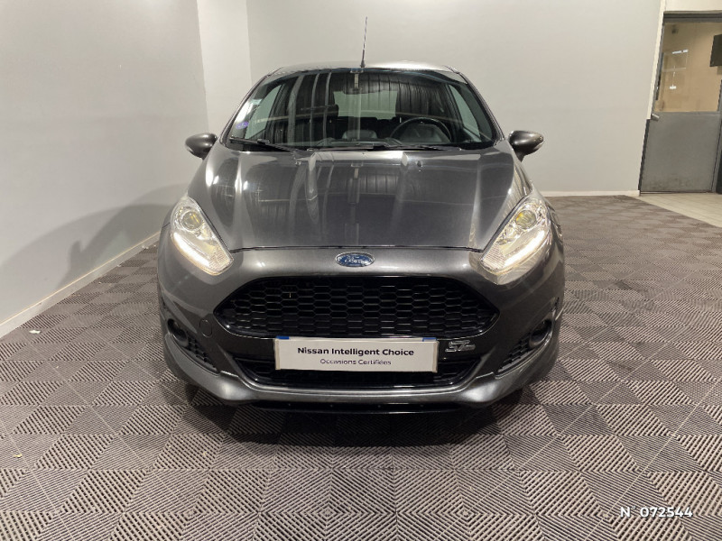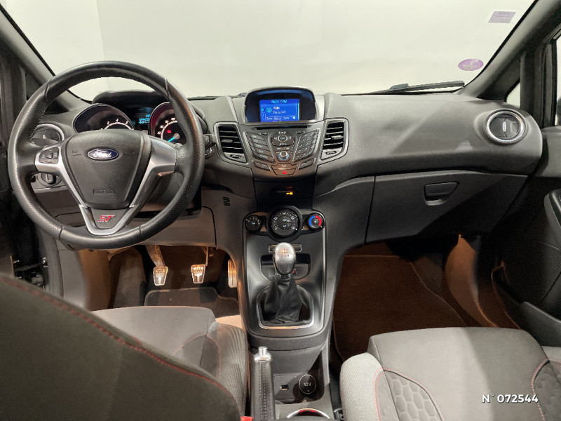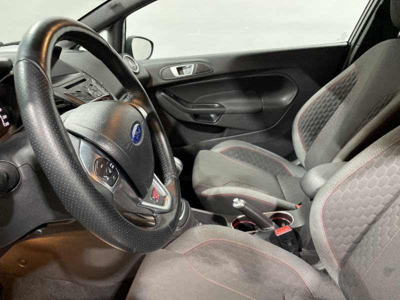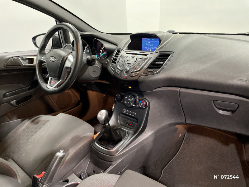 Suspension Sport / Système Stop&Start d'arrêt et de redémarrage automatique du moteur / Trappe à carburant avec système Ford EasyFuel / Volant et frein à main gainés de cuir / Alerte de ceinture de sécurité conducteur et passager AV / Audio Pack 11 SYNC : Radio CD/MP3, prise Aux et USB, 6HP, écran central argent couleur 4,2", commandes au volant, Ford SYNC avec AppLink, Bluetooth et commandes vocales / Badges ST-Line / Boîte à gants avec éclairage / Ciel de toit sombre / Console centrale premium avec 2 porte-gobelets, prise 12V, espace de rangement et accoudoir central / Désactivation de l'airbag passager / Eclairage du coffre / Eclairage intérieur à extinction progressive / Extinction différée des feux / Indicateur de changement de vitesse / Jantes alliage 16" finition Rock Metallic / Jupes de bas de caisse latérales / Kit de réparation pneumatique / My Key / Pare-chocs AR avec diffuseur / Pare-chocs AV spécifique avec grilles de calandres supérieure et inférieure noires / Pédalier faà§on Aluminium / Phares antibrouillard AV avec entourage Noir / Plaques de seuil de portes AV avec logo ST-Line / Poches aumonières au dos des sièges AV / Poignées de portes extérieures couleur carrosserie / Pommeau de levier de vitesse gainé cuir / Projecteurs halogènes avec feux de jour à LED / Soufflet de pommeau de levier de vitesse gainé cuir avec lettres noires