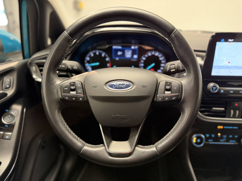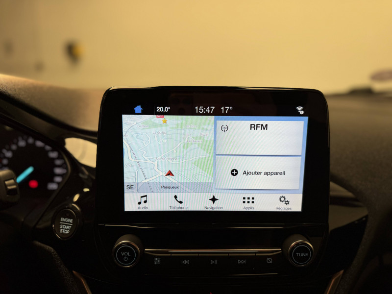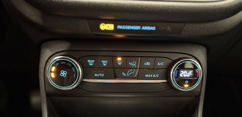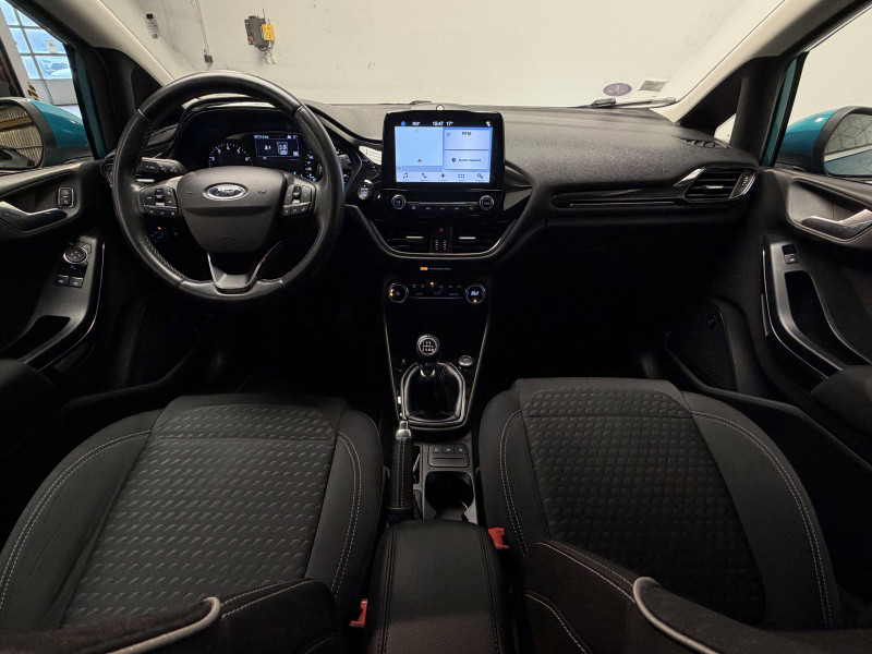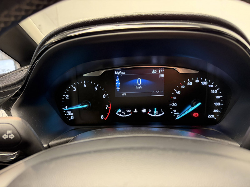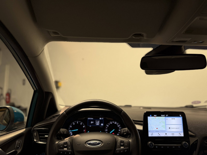 3ème appui-tête AR / Aide au maintien dans la voie / Alerte d'oubli de ceintures de sécurité AV et AR / Alerte vigilance du conducteur / Becquet AR couleur carrosserie / Bouton de démarrage "Ford Power" / Console centrale avec accoudoir et rangement intégré - inclus éclairage d'ambiance intérieur / Contour de grille de calandre chromé / Désactivation de l'airbag passager / Eclairage d'ambiance intérieur / Environnement noir / Feux antibrouillard AV avec fonction cornering / Feux de jour automatiques / Garnissage intérieur avec environnement Noir Charcoal, Tissu Noir Charcoal avec coutures argent / Grille de calandre avec barres et contour chromés / Indicateur de changement de vitesse / Jantes alliage 16", pneumatiques 195/55 R16 / Kit de réparation pneumatique / Lèche-vitres chromés / My Key / Ordinateur de bord couleur 4,2" avec EcoMode / Pack 6,5'' / Pack Assistance 1 / Pack Visibilité / Pare-chocs couleur carrosserie / Poignées de portes extérieures couleur carrosserie / Réglage lombaire du siège conducteur / Rétroviseur intérieur électrochrome / Rétroviseurs électriques rabattables chauffants avec éclairage d'approche / Rétroviseurs extérieurs électriques et chauffants couleur carrosserie / Sellerie tissu noir Ellow avec renforts latéraux Domo / Système audio SYNC 3 avec écran tactile 6,5" compatible AppLink, Apple CarPlay et Androïd auto / Tapis de sol AR en velours / Tapis de sol AV / Trappe à carburant EasyFuel / Volant gainé cuir 3 branches / Volant, soufflet de levier de vitesse et frein à main en cuir
