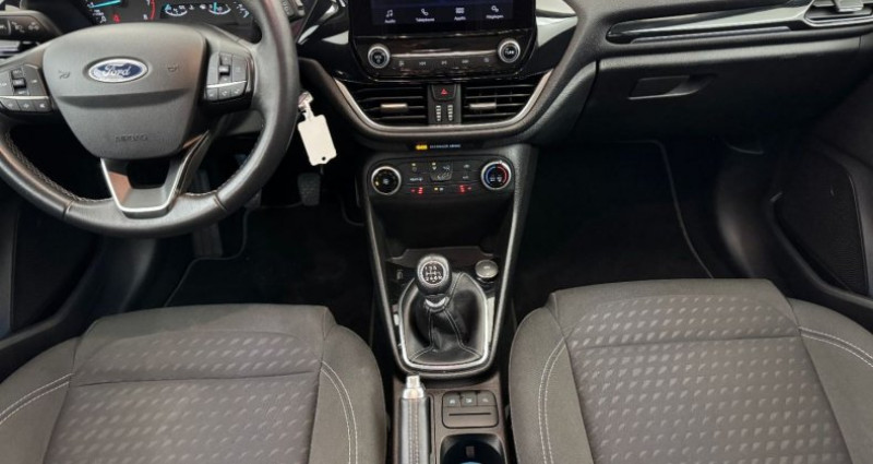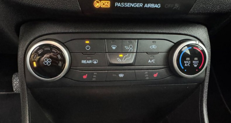 Cylindrée : 998 cm3 EQUIPEMENTS Vitres AV éléctriques, Poignées de portes couleur carrosserie, Système de surveillance de la pression des pneus, Rétroviseurs rabattables électriquement avec éclairage d'approche, Feux de jour à LED et feux AR à LED, Verrouillage centralisé à distance, Rétroviseurs extérieurs couleur carrosserie réglables électriquement et chauffants, Phares antibrouillard AV avec fonction éclairage des angles, Grille de calandre avec barres horizontales et contour façon chrome, Levier de vitesse en cuir, Ordinateur de bord 4.2 monochrome, ESP, Levier de frein à main en cuir, Sièges avants chauffants + Pare/brise chauffant, Air conditionné, Volant gainé cuir 3 branches, Limiteur de vitesse, Désactivation de l'airbag passager, Direction assistée électrique, Becquet AR couleur carrosserie, Console centrale avec accoudoir et rangements, Banquette rabattable / 60/40, Airbags frontaux latéraux (thorax) et rideaux, 3ème appui/tête AR, 2 Fixations ISOFIX aux places AR, VOEU, Système audio Ford SYNC avec écran tactile,