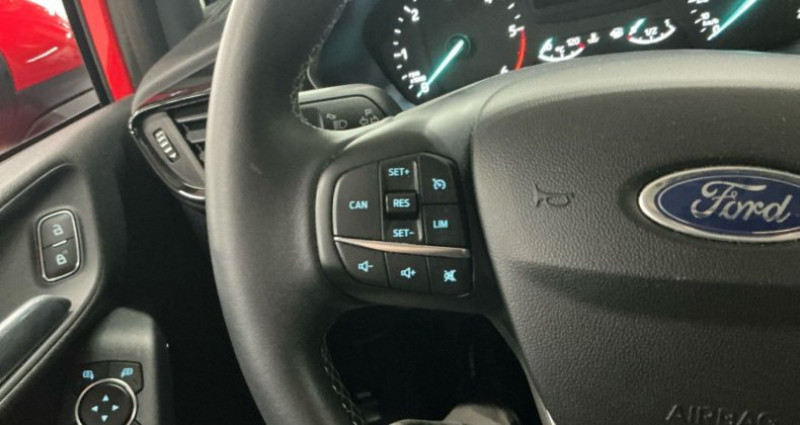 Cylindrée : 1499 cm3 EQUIPEMENTS 2 Fixations ISOFIX aux places AR, Aide au démarrage en côte, Direction assistée électrique, Régulateur de vitesse, Limiteur de vitesse, Verrouillage centralisé à distance, Volant gainé cuir 3 branches, Désactivation de l'airbag passager, Air conditionné, Allumage automatique des feux, Sièges avants chauffants, Becquet AR couleur carrosserie, Allumage automatique des essuie/glaces, ESP, Aide au maintien dans la voie, 3ème appui/tête AR, Airbags frontaux latéraux (thorax) et rideaux, Lève/vitres AR électriques, Levier de frein à main en cuir, Aide au stationnement AR, Système de surveillance de la pression des pneus, Poignées de portes couleur carrosserie, Ordinateur de bord 4.2 monochrome, Phares AV avec projecteurs LED, Banquette rabattable / 60/40, Alerte de ceinture de sécurité AV/AR, Système audio Ford SYNC avec écran tactile 8 2 ports USB DAB, Rétroviseurs rabattables électriquement avec éclairage d'approche, Rétroviseurs extérieurs couleur carrosserie réglables électriquement et chauffants, Levier de vitesse en cuir, Feux de jour à LED, VOEU,