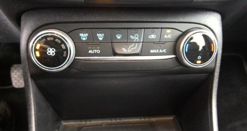 Cylindrée : 999 cm3 EQUIPEMENTS Aide au démarrage en côte, 3ème appui/tête AR, Air conditionné automatique, Pare/chocs couleur carrosserie, Verrouillage centralisé à distance, Console centrale avec accoudoir, Lèche/vitres chromés, Siège conducteur à réglage manuel 4 positions, Siège passager à réglage manuel 2 positions, Ordinateur de bord couleur 4.2, Désactivation de l'airbag passager, Direction assistée électrique, Reconnaissance des panneaux de signalisation, Poignées de portes couleur carrosserie, Limiteur et régulateur de vitesse, Phares et feux de route à LED, Sellerie Tissu Noir Kasbah avec renforts latéraux Eton, Rétroviseurs extérieurs couleur carrosserie rabattables manuellement, Vitres AV et AR électriques, Volant 3 branches en cuir, 2 Fixations ISOFIX aux places AR, Système audio Ford SYNC avec écran tactile compatible AppLink Apple CarPlay et Android auto, Peinture métallisée Noir Agate, Alerte de baisse de vigilance du conducteur, 5 ceintures de sécurité 3 points, ESP, Airbags frontaux latéraux (thorax) et rideaux, Pack Nav, Alerte de franchissement involontaire de ligne, Système de surveillance de la pression des pneus, Becquet AR couleur carrosserie, Système MyKey (seconde clé programmable), Alerte de ceinture de sécurité AV/AR, Trappe Easy Fuel, Grille de calandre avec barres horizontales et contour façon chrome, Banquette rabattable 60/40, Allumage automatique des phares et des feux de route, Jantes acier structuré 15 avec pneus 195/60/R15, Aide au maintien dans la voie, Aide au stationnement AR,