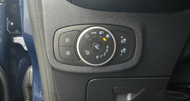 Cylindrée : 999 cm3 EQUIPEMENTS Allumage automatique des essuie/glaces, Airbags frontaux latéraux (thorax) et rideaux, Eclairage d'ambiance intérieur, Aide au démarrage en côte, Désactivation de l'airbag passager, Direction assistée électrique, Alerte de franchissement involontaire de ligne, Becquet AR couleur carrosserie, ESP, Banquette rabattable / 60/40, Alerte de ceinture de sécurité AV/AR, Feux de jour à LED, Limiteur de vitesse, 2 Fixations ISOFIX aux places AR, 3ème appui/tête AR, Aide au maintien dans la voie, Aide au stationnement AR, Allumage automatique des feux, Console centrale avec accoudoir, 5 ceintures de sécurité 3 points, Pare/chocs couleur carrosserie, Régulateur de vitesse, Phares AV avec projecteurs LED sur feux de croisements, Jantes alliage 16 10 branches, Verrouillage centralisé à distance, Air conditionné automatique, Vitres AV et AR électriques, Système de surveillance de la pression des pneus, Levier de frein à main en cuir, Grille de calandre avec barres horizontales et contour façon chrome, Système audio Ford SYNC avec écran tactile 8 2 ports USB DAB compatible AppLink Apple CarPlay et Android auto, Poignées de portes couleur carrosserie, Rétroviseurs extérieurs couleur carrosserie réglables électriquement et chauffants, Ordinateur de bord 4.2 monochrome, Trappe Easy Fuel, Phares antibrouillard AV avec fonction éclairage des angles, Levier de vitesse en cuir, Sellerie tissu noir Vibrant avec renforts latéraux Eton, Lèche/vitres chromés,