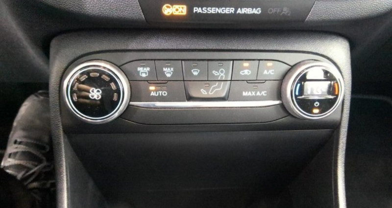 Cylindrée : 999 cm3 EQUIPEMENTS Allumage automatique des essuie/glaces, Airbags frontaux latéraux (thorax) et rideaux, Eclairage d'ambiance intérieur, Aide au démarrage en côte, Désactivation de l'airbag passager, Direction assistée électrique, Alerte de franchissement involontaire de ligne, Becquet AR couleur carrosserie, ESP, Banquette rabattable / 60/40, Alerte de ceinture de sécurité AV/AR, Feux de jour à LED, Limiteur de vitesse, 2 Fixations ISOFIX aux places AR, 3ème appui/tête AR, Aide au maintien dans la voie, Aide au stationnement AR, Allumage automatique des feux, Console centrale avec accoudoir, 5 ceintures de sécurité 3 points, Pare/chocs couleur carrosserie, Régulateur de vitesse, Phares AV avec projecteurs LED sur feux de croisements, Jantes alliage 16 10 branches, Verrouillage centralisé à distance, Air conditionné automatique, Vitres AV et AR électriques, Système de surveillance de la pression des pneus, Levier de frein à main en cuir, Grille de calandre avec barres horizontales et contour façon chrome, Système audio Ford SYNC avec écran tactile 8 2 ports USB DAB compatible AppLink Apple CarPlay et Android auto, Poignées de portes couleur carrosserie, Rétroviseurs extérieurs couleur carrosserie réglables électriquement et chauffants, Ordinateur de bord 4.2 monochrome, Trappe Easy Fuel, Phares antibrouillard AV avec fonction éclairage des angles, Levier de vitesse en cuir, Sellerie tissu noir Vibrant avec renforts latéraux Eton, Lèche/vitres chromés,