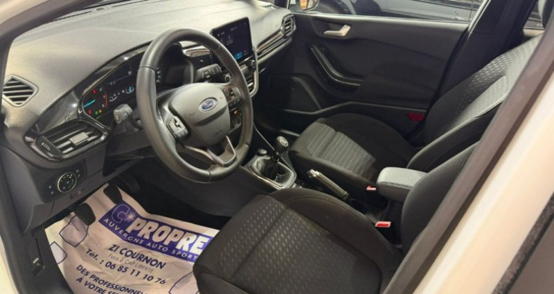 Cylindrée : 999 cm3 Nb. Vitesse : 6 EQUIPEMENTS Aide parking, Peinture intégrale, Régulateur de vitesse, Banquette 1/3 / 2/3, Climatisation automatique, Direction assistée, Fermeture électrique, Régulateur limiteur de vitesse, Rétroviseur int. jour/nuit auto, Vitres ar. surteintées, Vitres électriques, ESP, Aide au démarrage en côte, Alerte franchissement ligne, Essuie/glaces automatiques, Feux automatiques, Phares av. de jour à LED, 2 Fixations ISOFIX aux places AR, 3ème appui/tête AR, 5 ceintures de sécurité 3 points, Aide au maintien dans la voie, Airbags frontaux latéraux (thorax) et rideaux, Alerte de ceinture de sécurité AV/AR, Becquet AR couleur carrosserie, Console centrale avec accoudoir et rangements, contrôle de pression des pneus, Eclairage d'ambiance intérieur, FordPass Connect avec modem embarqué, Grille de calandre avec barres horizontales et contour façon chrome, Jantes alliage 15, Lèche/vitres chromés, Levier de frein à main en cuir, Levier de vitesse en cuir, Ordinateur de bord 4.2 monochrome, Phares antibrouillard AV avec fonction éclairage des angles, Phares AV avec projecteurs LED, Poignées de portes couleur carrosserie, Rétroviseurs extérieurs couleur carrosserie réglables électriquement et chauffants, Sellerie tissu noir Court avec renforts latéraux View, Sellerie tissu noir Vibrant avec renforts latéraux Eton, Système audio Ford SYNC avec écran tactile 8 2 ports USB DAB compatible AppLink Apple CarPlay et Android auto, Système MyKey (seconde clé programmable), Tapis de sol AV, Trappe Easy Fuel, roue de secours, pack keyfree, super ethanol,